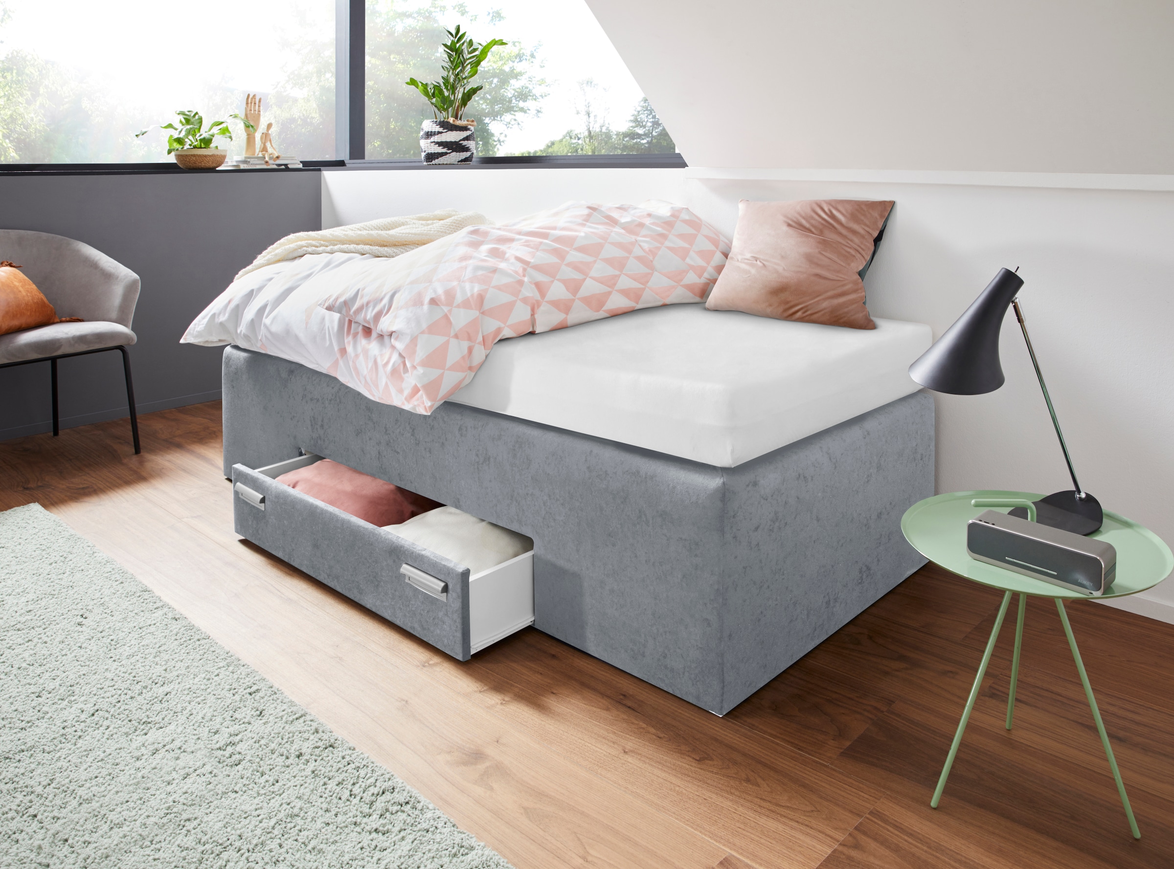 + Couleurs - Lit boxspring mit integrierter Schublade, frei im Raum stellbarWestfalia SchlafkomfortPrix actueldès 699.00 CHF+ Couleurs