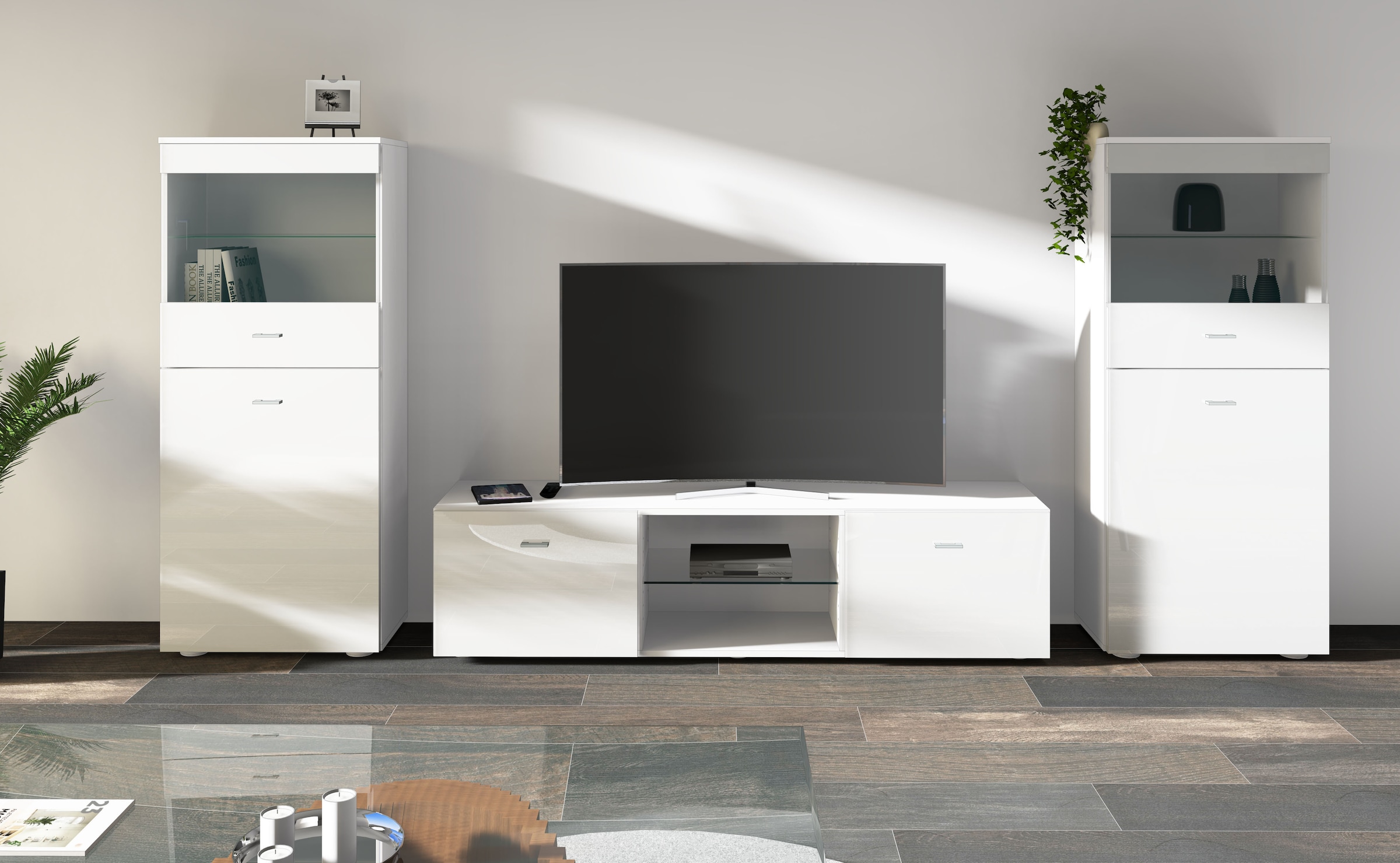 - INOSIGNMeuble mural »Ava, Wohnzimmer-Set hängend/stehend montierbar, Vitrine, Lowboard« 3-tlg.