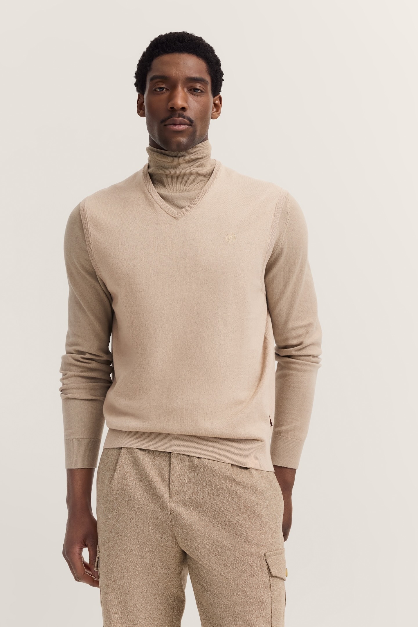 Si vous préférez un look sportif, choisissez un pull blanc à col en V, avec une couleur contrastante au niveau de l'encolure et des emmanchures, par exemple, avec des empiècements en maille de couleurs contrastées. Complétez ce look avec un bermuda clair, comme le beige, et des baskets blanches. Vous préférez le classique et l'élégance ? Optez alors pour un pull en maille fine en laine mérinos fine avec son motif à losanges caractéristique. Une chemise et un pantalon unis, ainsi que d'élégantes chaussures à lacets, s'accordent parfaitement avec ce look.