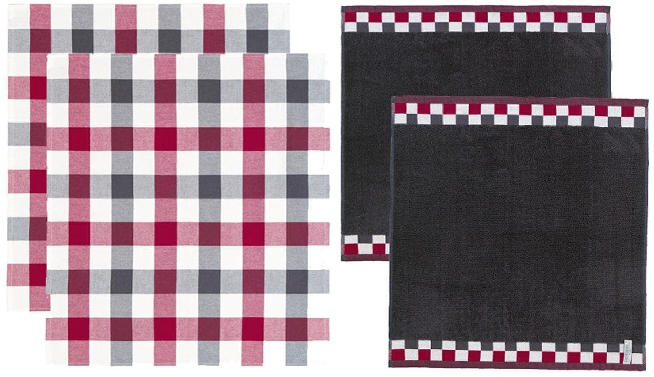 DDDDD Chiffon à vaisselle »Carré« Combiset: 2 Küchentücher & 2 Geschirrtücher