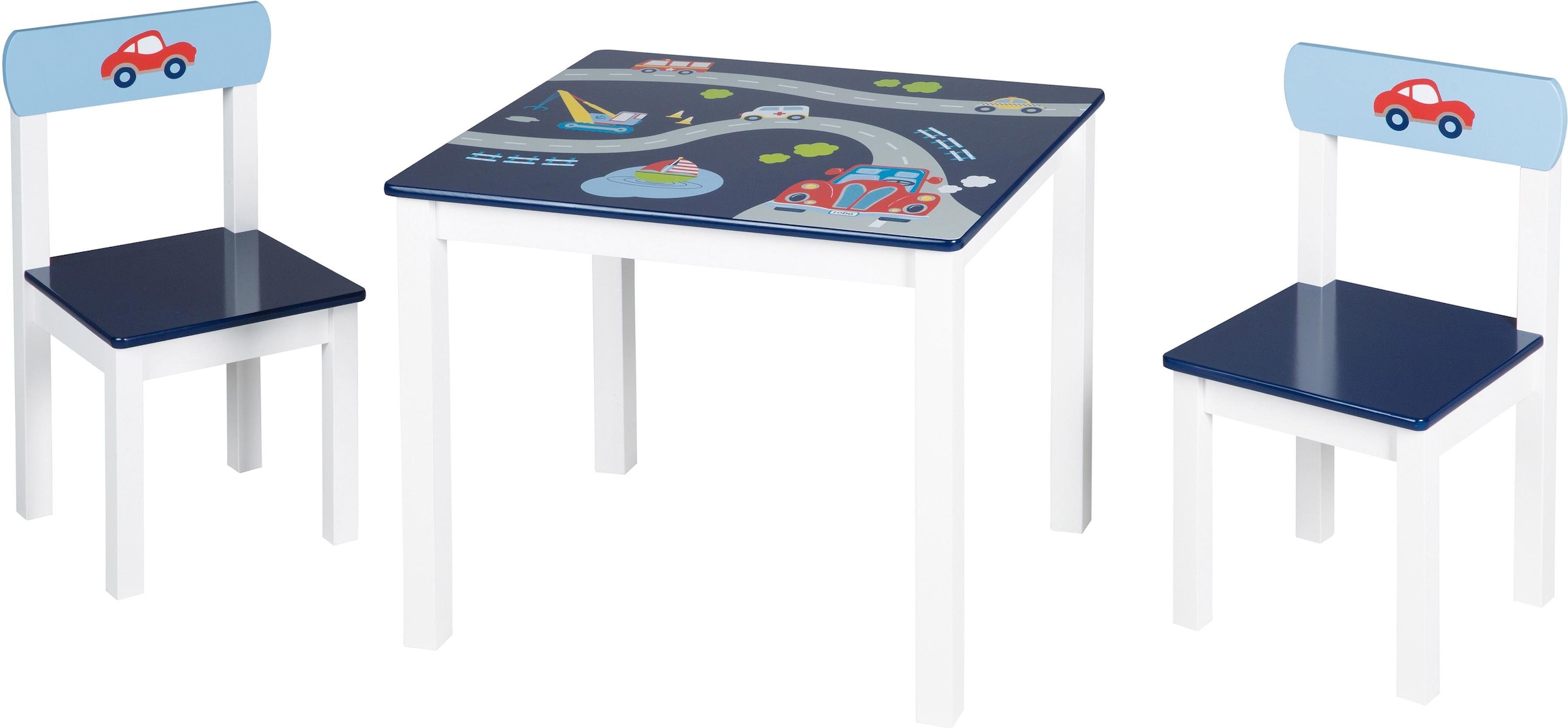 Die 3-teilige roba Kindersitzgruppe »Rennfahrer« aus lackiertem und mit Fahrzeug-Motiven bedrucktem MDF ist ideal auf die Sitzbedürfnisse von 2- bis 10-jährigen Kindern zugeschnitten. Sie besteht aus einem formschönen Kindertisch und zwei passenden Stühlen in Weiss und Blautönen. Ihr aktiver Nachwuchs kann an der Kindersitzgruppe schon von klein auf bequem und komfortabel am Tisch sitzen, essen, spielen, malen und basteln. Mit der Kindersitzgruppe können Kinder ihre Welt entdecken und viele schöne gemeinsame Momente mit ihren Eltern und Spielgefährten erleben.