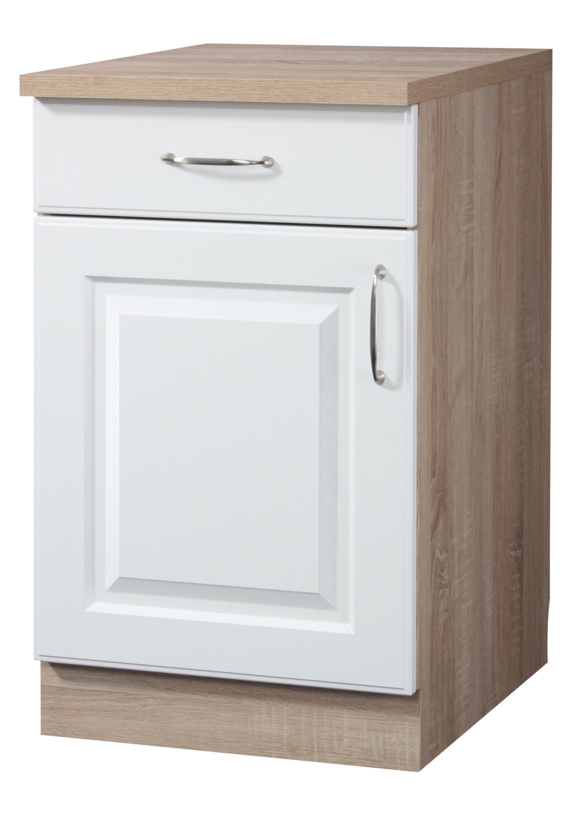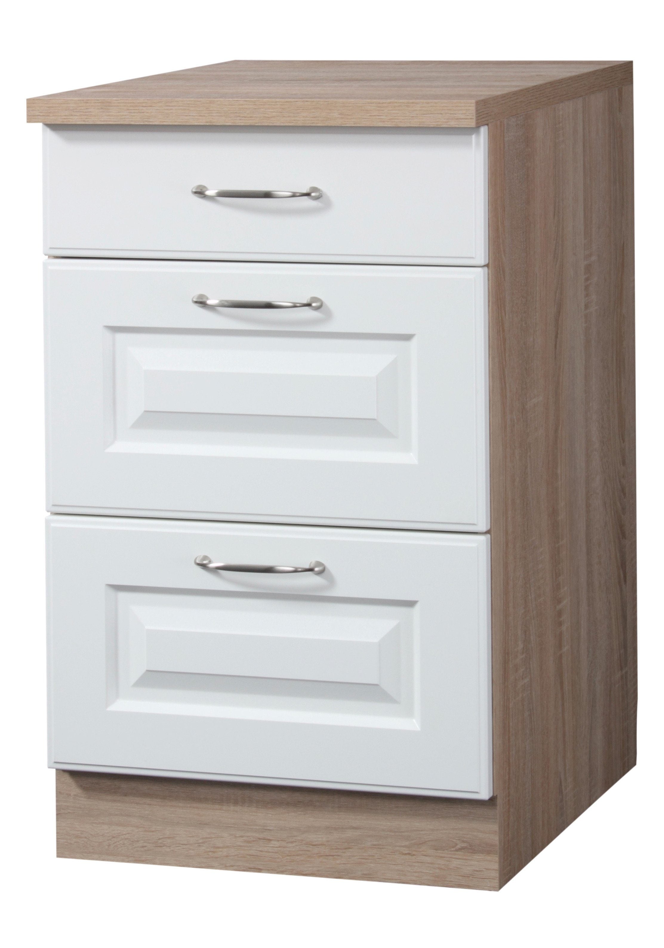 Front: Kassette Weiss, Korpus und Arbeitsplatte: Sonoma Eiche