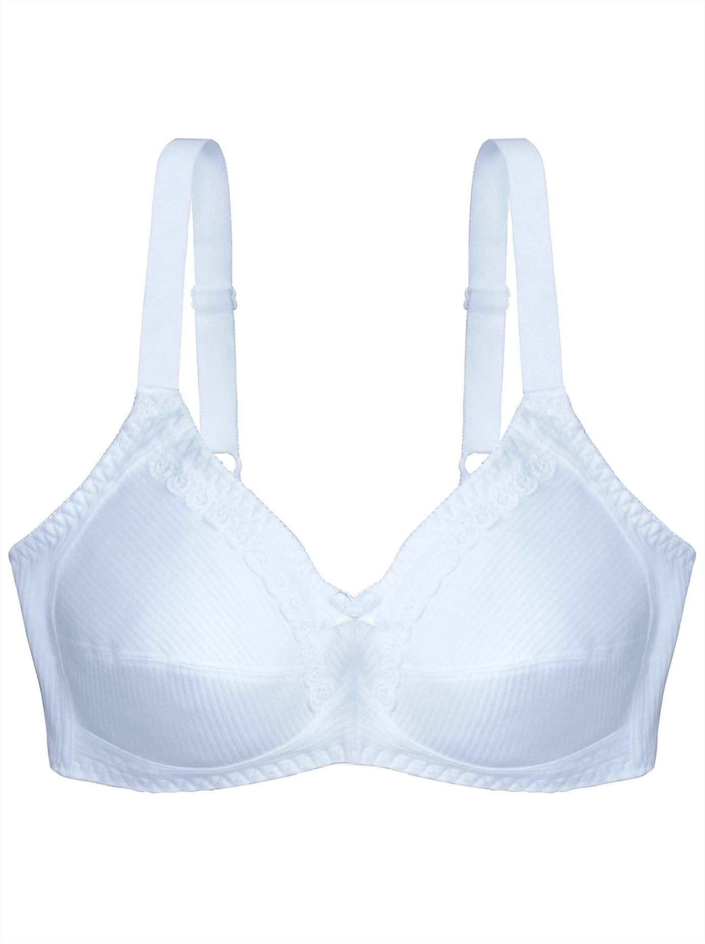 BH ohne Bügel von Naturana im Nadelstreifen-Dessin. 2-geteilte Cups mit Blende am Dekolleté und eingesetzter Zierborte. Breite, im Rücken verstellbare Träger. Trageangenehme Qualität. 100% Baumwolle.