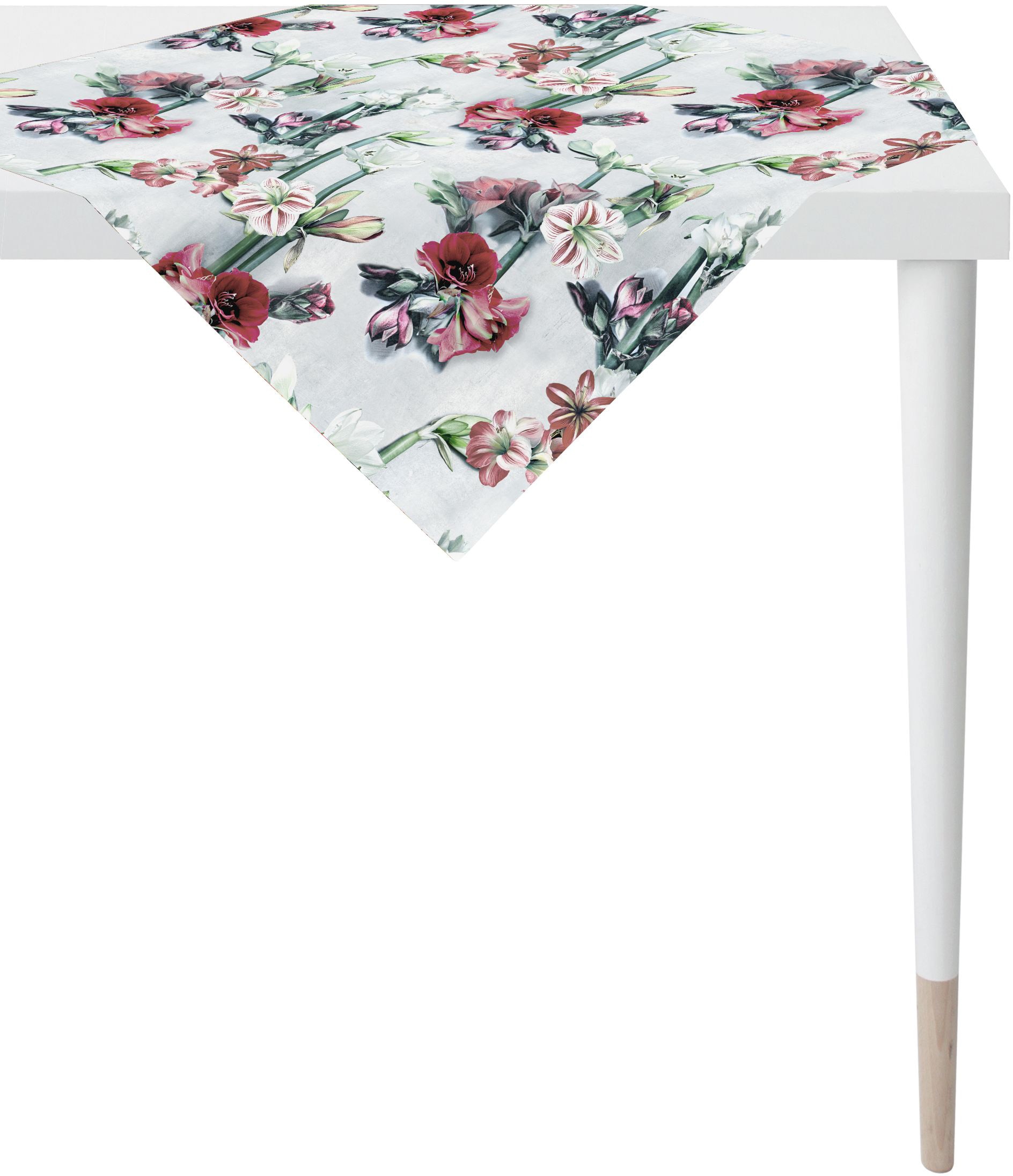 Die elegante Amaryllis gilt als Trendblüte! Wir aus dem Hause Apelt haben daraus ein wunderschönes Blüten-Allover gemacht, das den Spätsommer ins Haus holt. Die hochwertige Mitteldecke mit feinem Digitaldruck ist erstklassig verarbeitet und sorgt für eine schöne Atmosphäre. Sie passt perfekt zur herbstlichen Tischdekoration und ist überall ein echter Blickfang. Waschbar bei 30°C im Schonwaschgang, feucht aufhängen. Material: 100% Baumwolle.