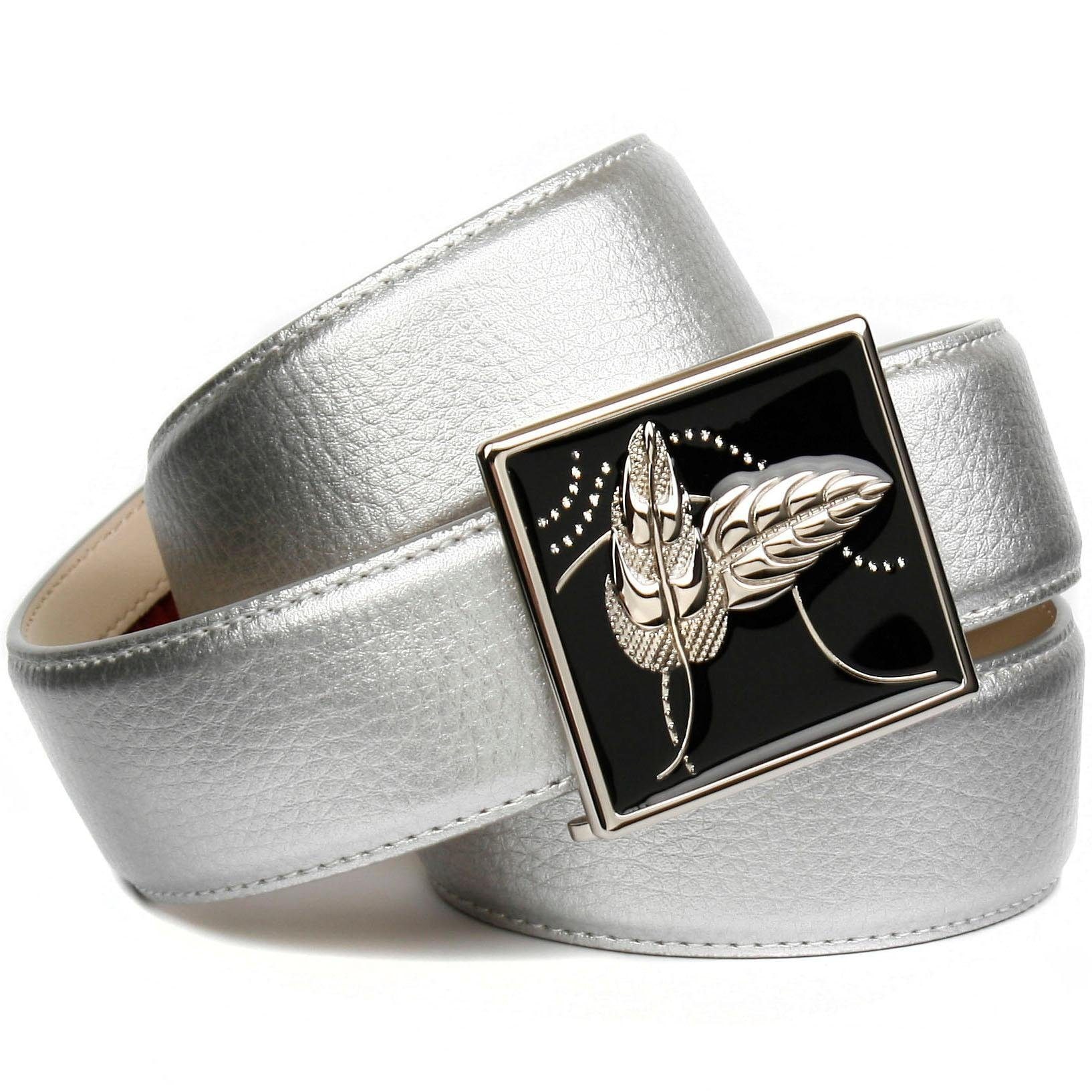 Anthoni Crown Ceinture en cuir mit silberfarbener Automatik-Schliesse und drehendem Steuerruder