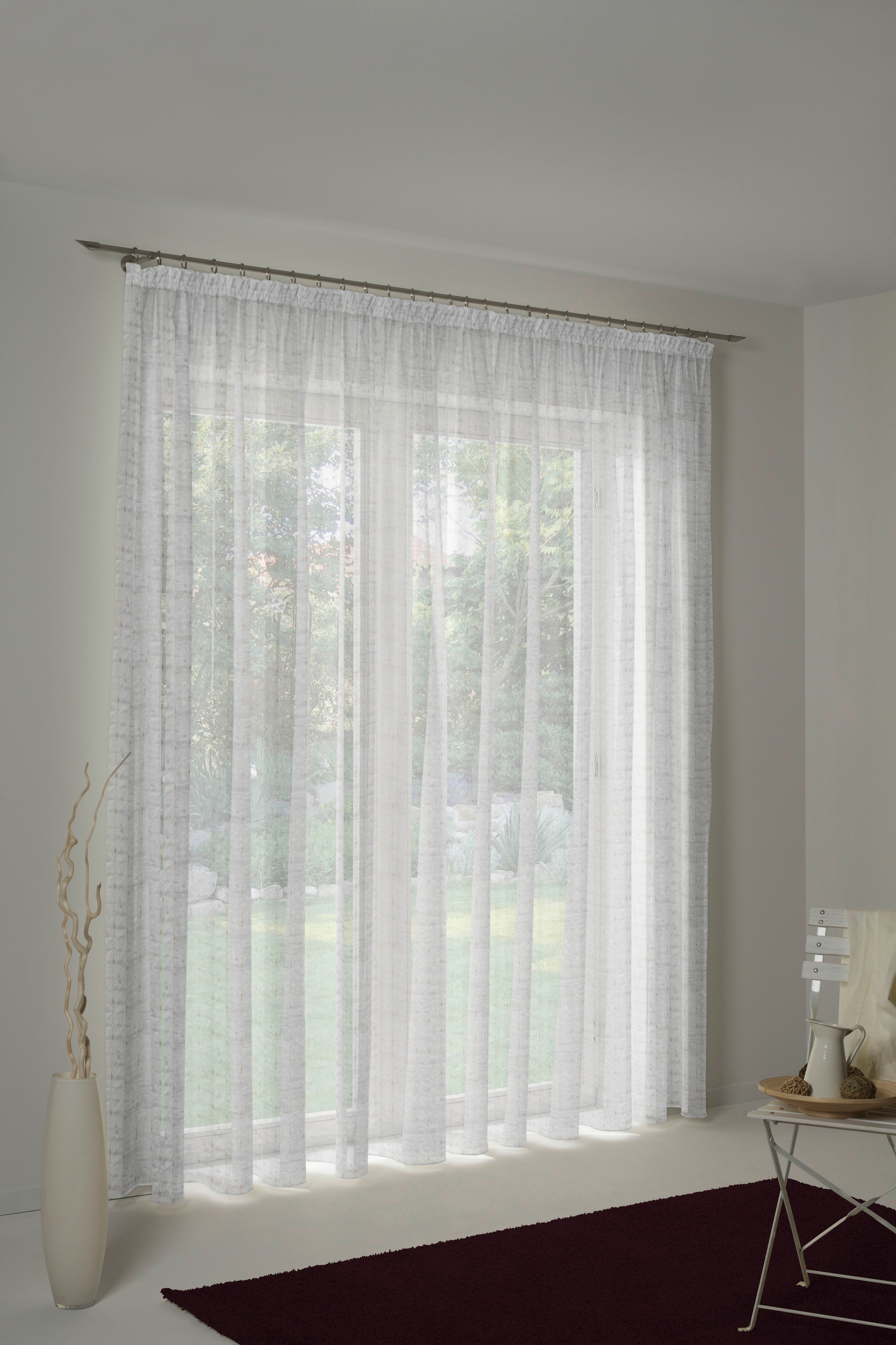 Note sur la suspension | Aufhängung erfolgt mittels Schlaufen an der Gardinenstange. |
