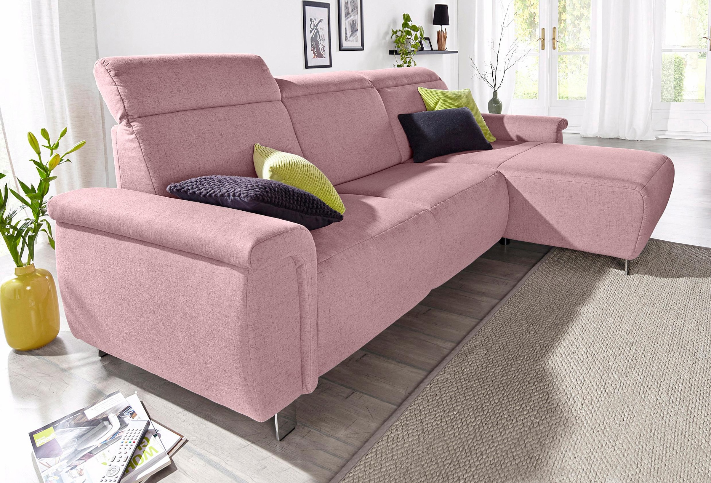 sit&more Canapé d'angle »Dundee L-Form« mit Federkern und Massivholzfüssen, wahlweise mit Kopfteilverstellung