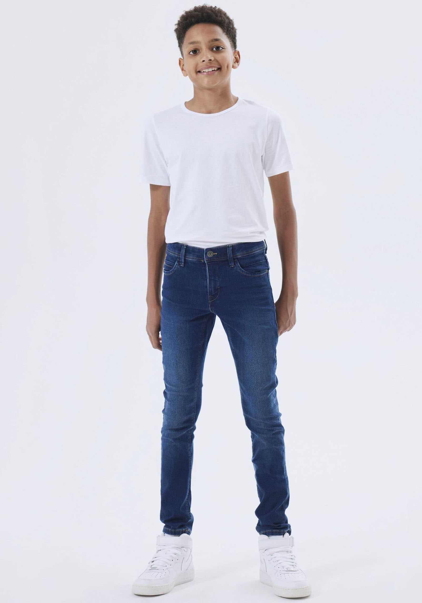 Name It Jeans stretch »NKMSILAS für Jungen mit verstellbarem Bund und schlanker Form« slim fit, Denim, Abriebeffekte, angesetztes Bündchen