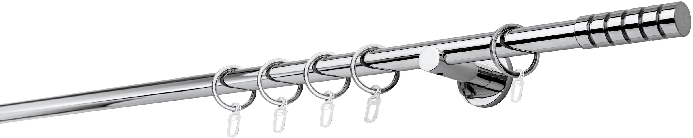 Gardinenstangenlänge = Fensterbreite + ca. 15 - 20 cm Überstand links + rechts