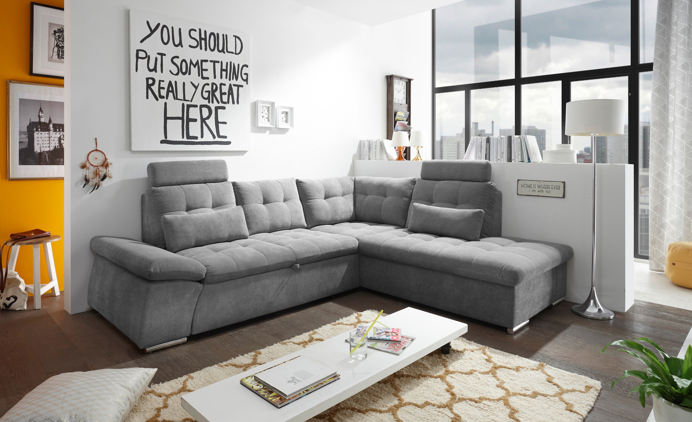 ED EXCITING DESIGN Canapé d'angle »Nalo L-Form« mit Bettfunktion, Armteilverstellung, Kopfstützen & 2 Nierenkissen