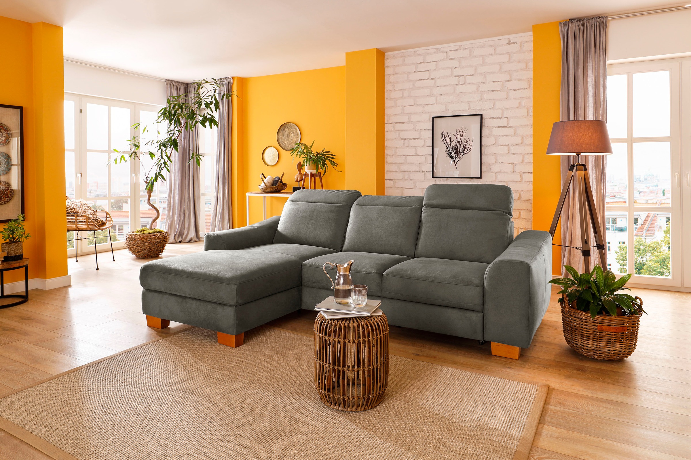 ED EXCITING DESIGN Canapé d'angle »Alice L-Form« mit Hocker & 3 Zierkissen