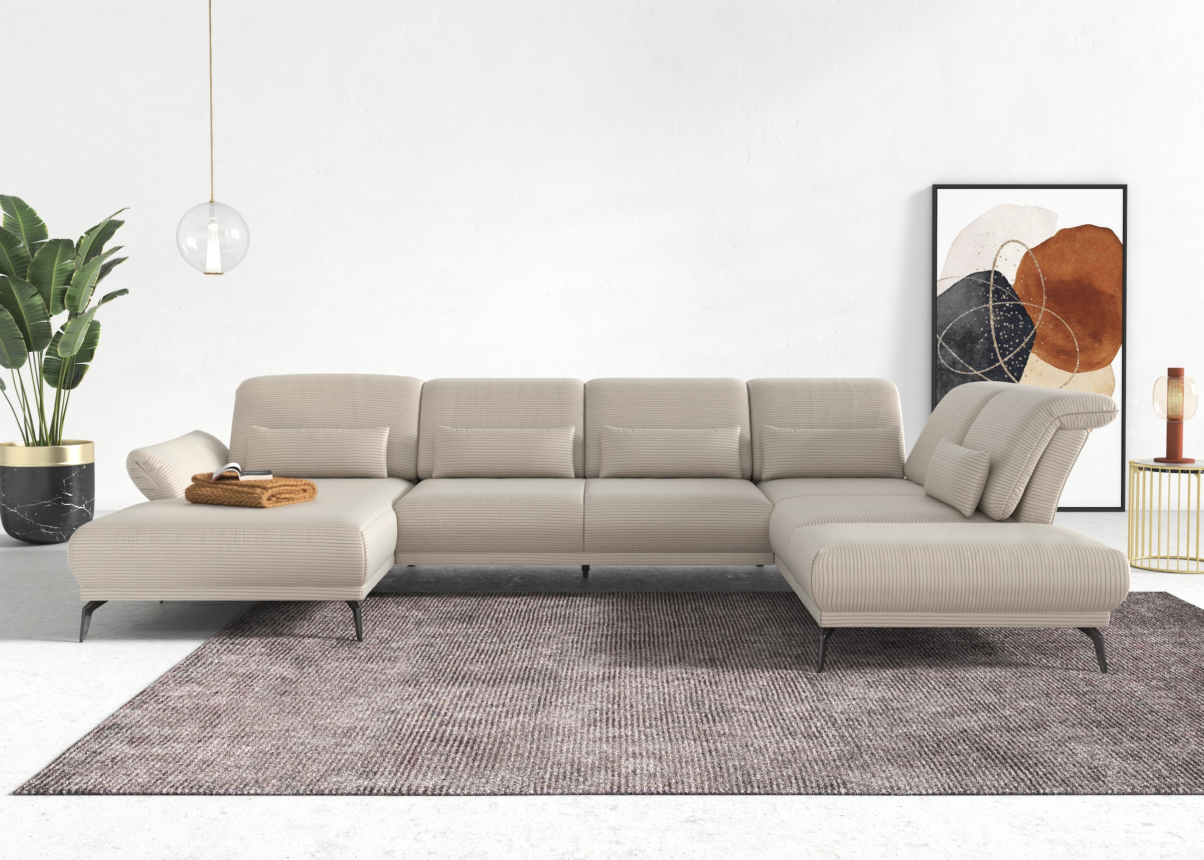 Home affaire Canapé d'angle »Coco L-Form« Sitztiefen-, Arm- und Kopfteilverstellung, Cord-Bezug, Fusshöhe 15 cm