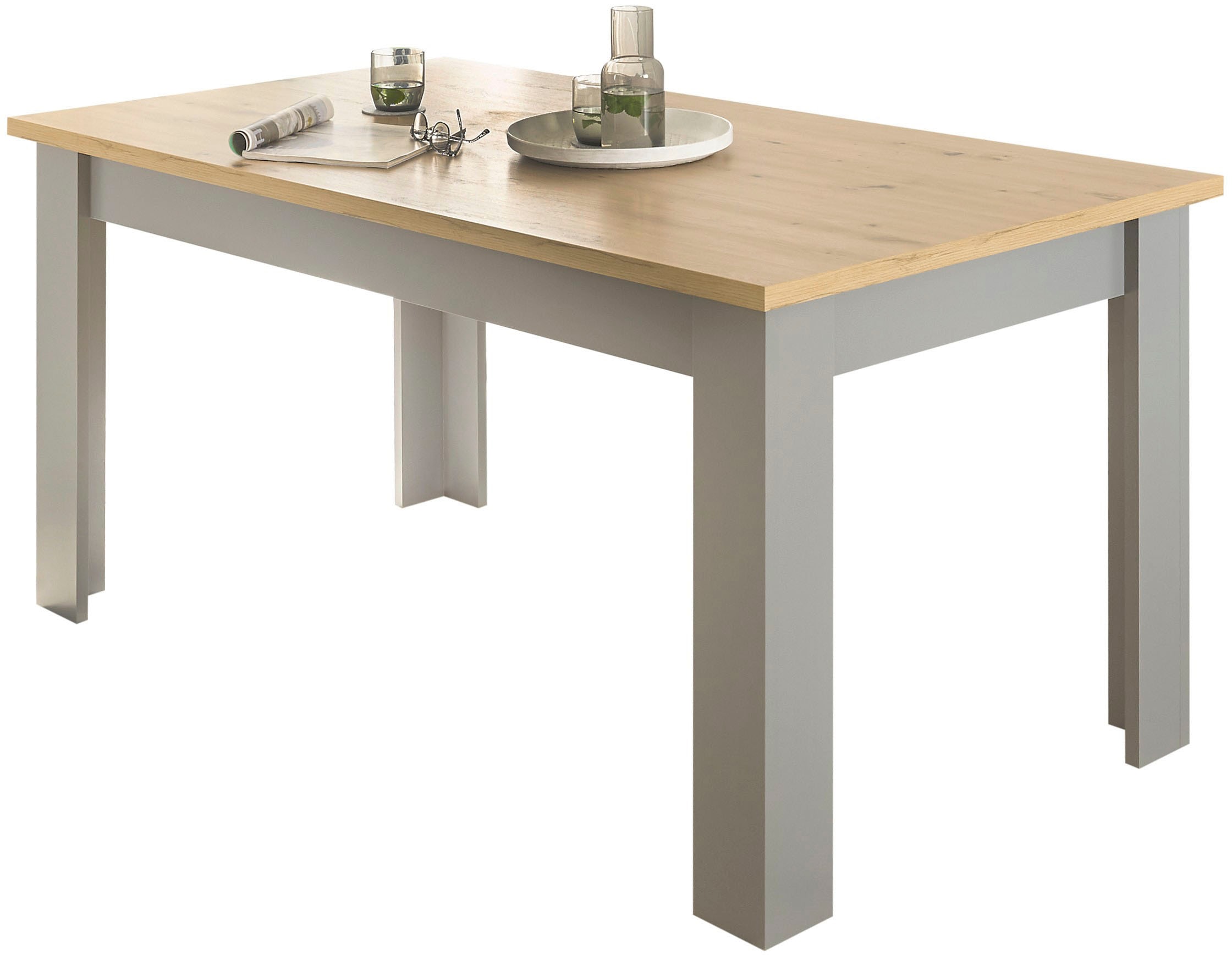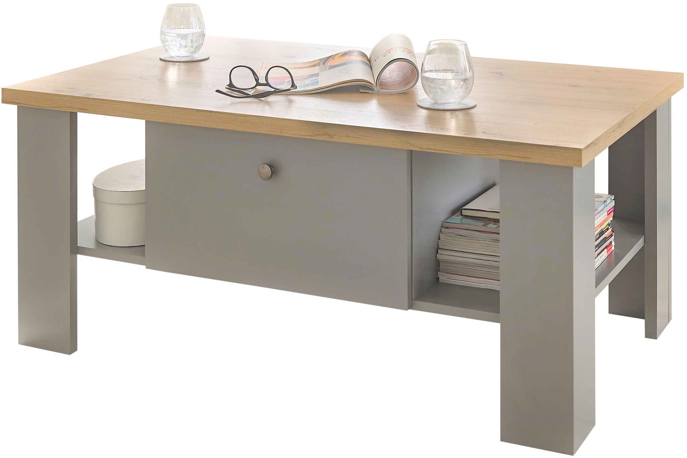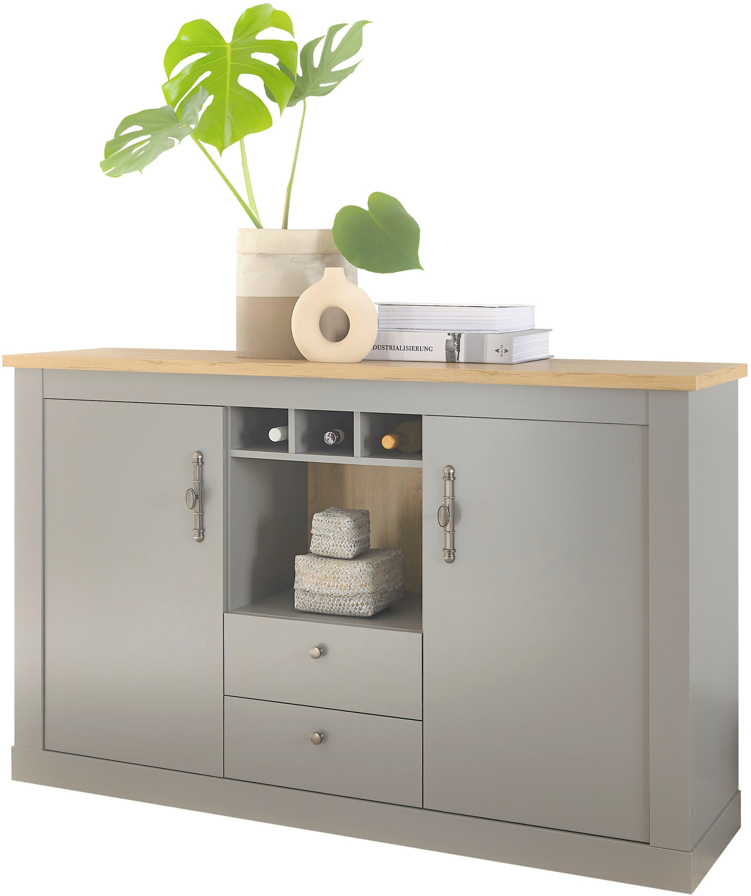 - In trendiger Farbausführung; Lichtgrau mit Absetzung in Eiche Dekor