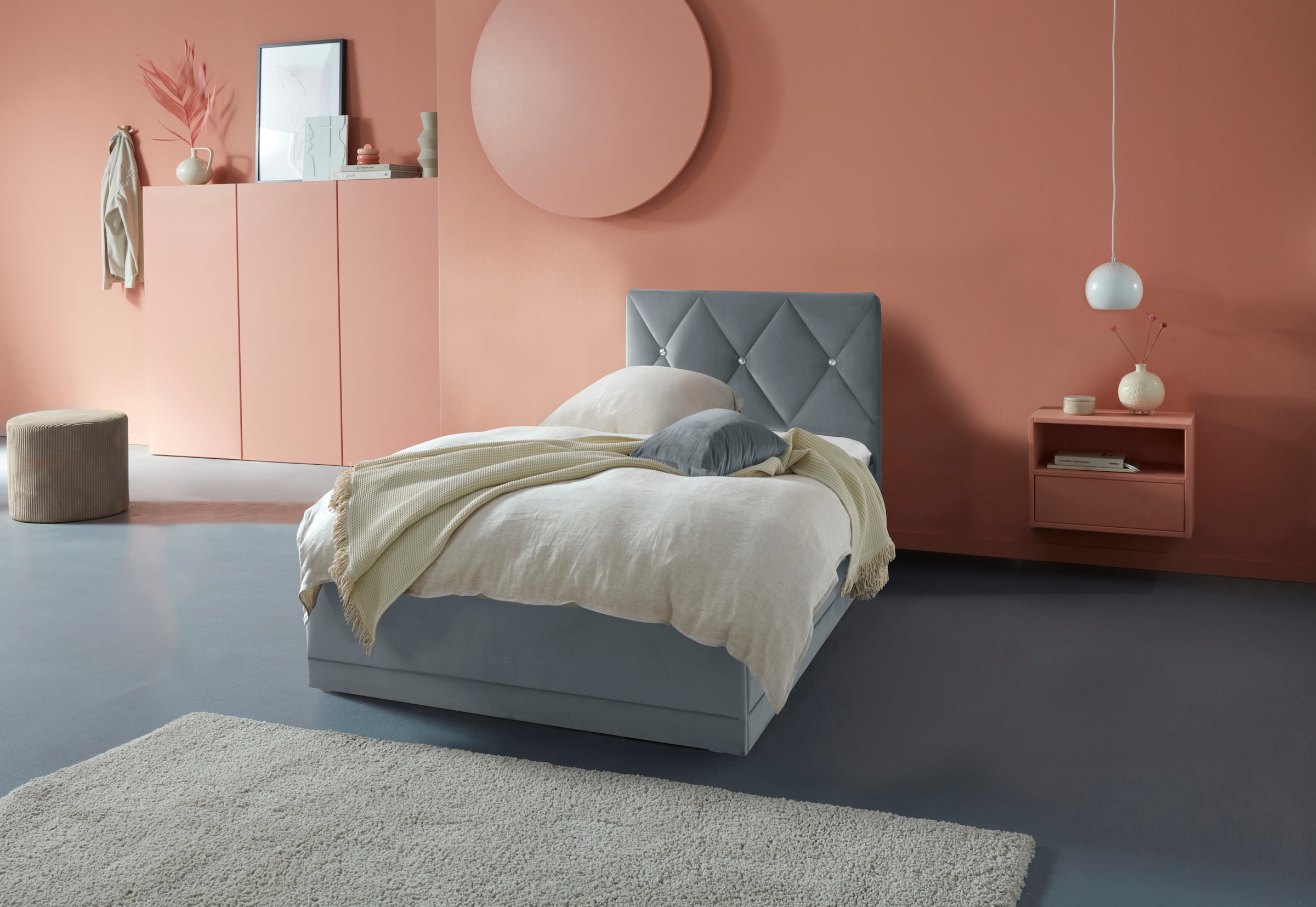 - Ausdrucksstarkes Kopfteil mit Knöpfen in Kristalloptik