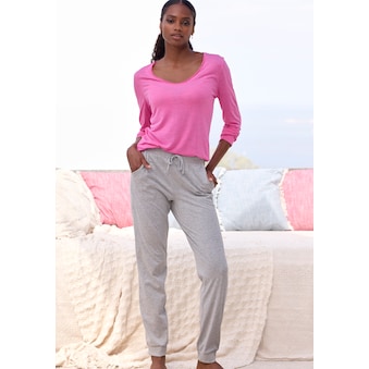 Lässiges Lounge-Shirt von Vivance Dreams. Weiter Rundhalsausschnitt mit Abschluss. Lockere Passform. Pflegeleichte, elastische Feinripp-Qualität mit Viskoseanteil.