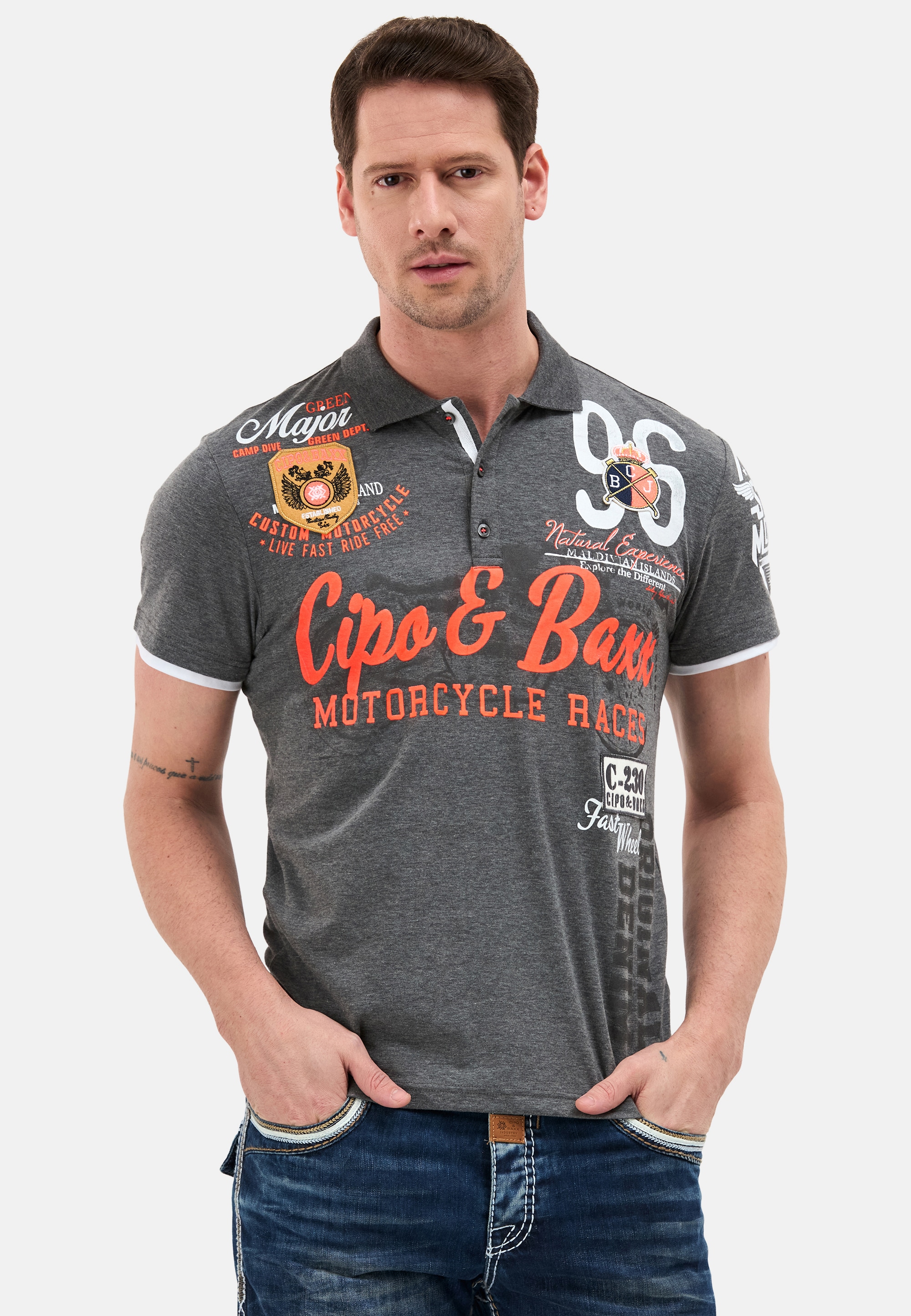 Trendiges Rundhalsshirt für Männer von Cipo & Baxx. Mit einem anschmiegsamen Schnitt. Die Ärmel sind kurz. Es ist mit einem coolen Print versehen. Das Oberteil besteht aus geschmeidigem Jersey und sorgt damit für Komfort und Bewegungsfreiheit.