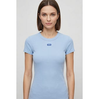 Klassisches Damen-T-Shirt von HUGO Blue mit Logo. Mit einem normalen Schnitt. . Das Oberteil ist dank des weichen Single Jerseys angenehm zu tragen.