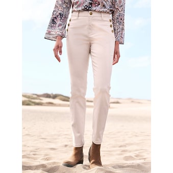 Hose Trageangenehmer Stretch mit effektvoller Waschung und geradem Bein. Bund mit Knopf-/Reissverschluss und Bindeband. Taschen vorn. Normale Leibhöhe. Regular fit. Fussweite ca. 32 cm. Unterstützt die Initiative Cotton made in Africa. 98% Baumwolle, 2% Elasthan. Maschinenwäsche.
