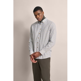 Entdecke das bedruckte bugatti Feincordhemd mit grafischem Print und Button-Down-Kragen. Hergestellt aus 100 % Baumwolle bietet es eine moderne, körpernahe Passform. Die runden 2-Knopf-Manschetten verleihen dem Hemd einen eleganten Touch. Perfekt für Herren, die Komfort und Stil verbinden wollen.