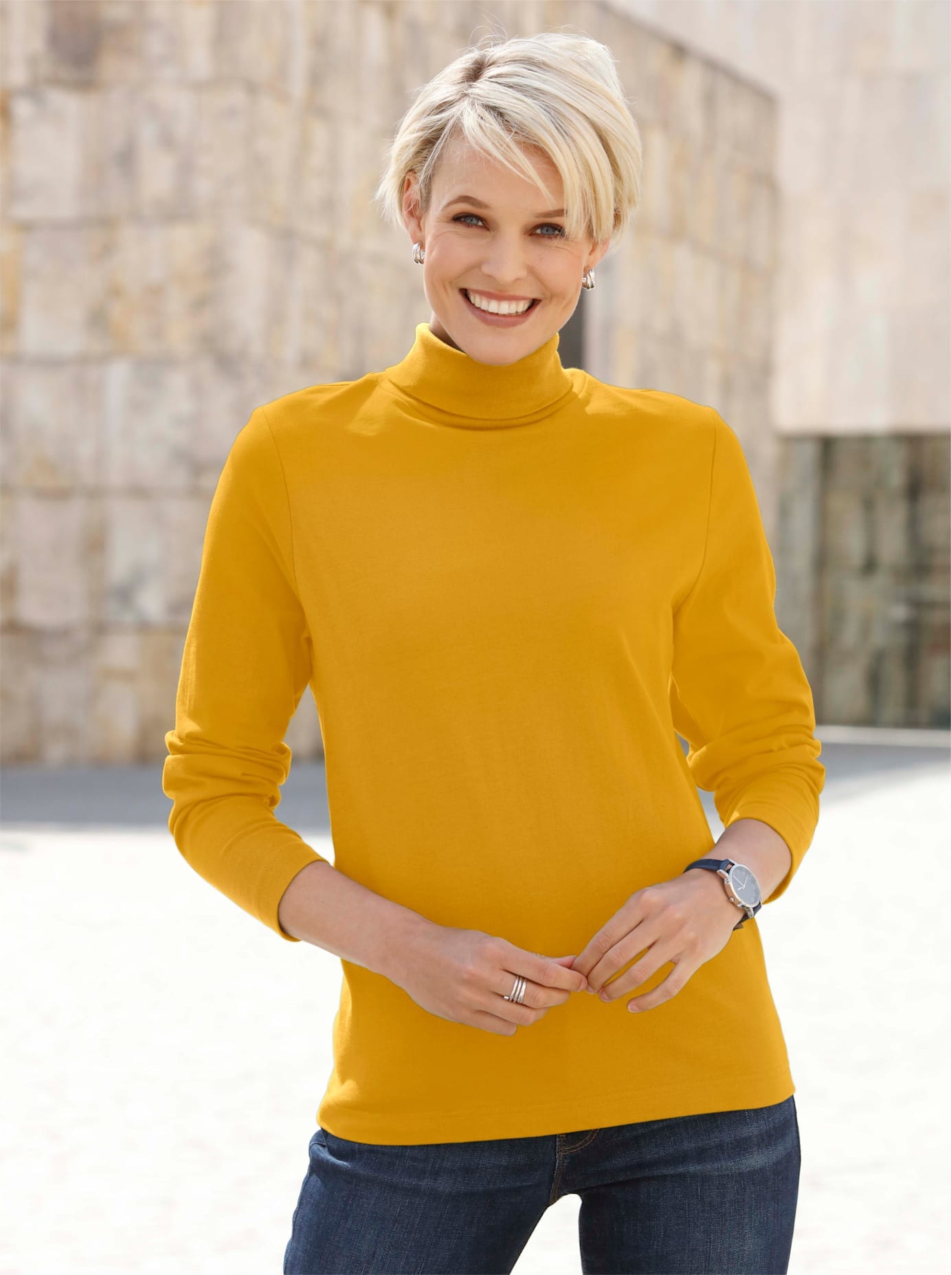 Ob solo oder als Unterziehteil – das Kurzarm-Shirt mit wärmendem Stehkragen ist ein unverzichtbares Basic. In hautsympathischer Qualität. 100% Baumwolle. Maschinenwäsche.