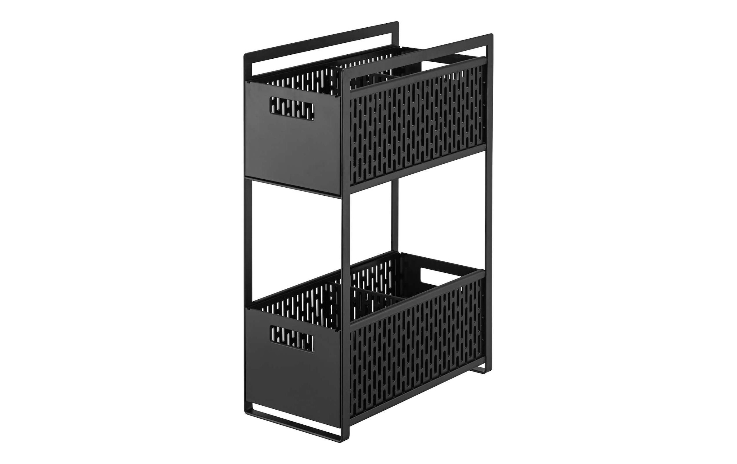Yamazaki Aufbewahrungskorb Tower. Mit flexibel einsetzbaren Trennwänden und zwei Griffen. Aus Acrylnitril-Butadien-Styrol (ABS)/Metall. Belastbarkeit: 6 kg / Ebene. Ideal für die Organisation von Küchen- und Badschränken.