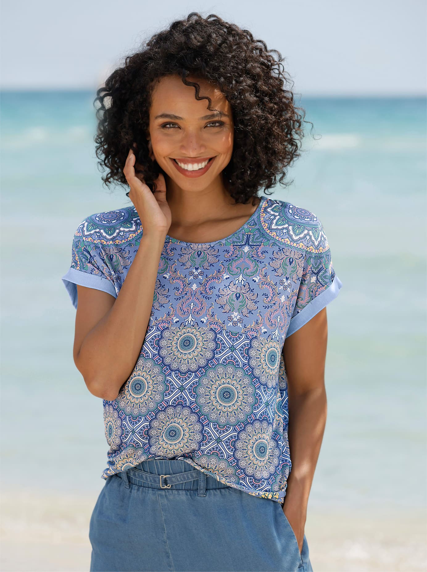 - Langarmbluse mit hüftbedeckender Länge