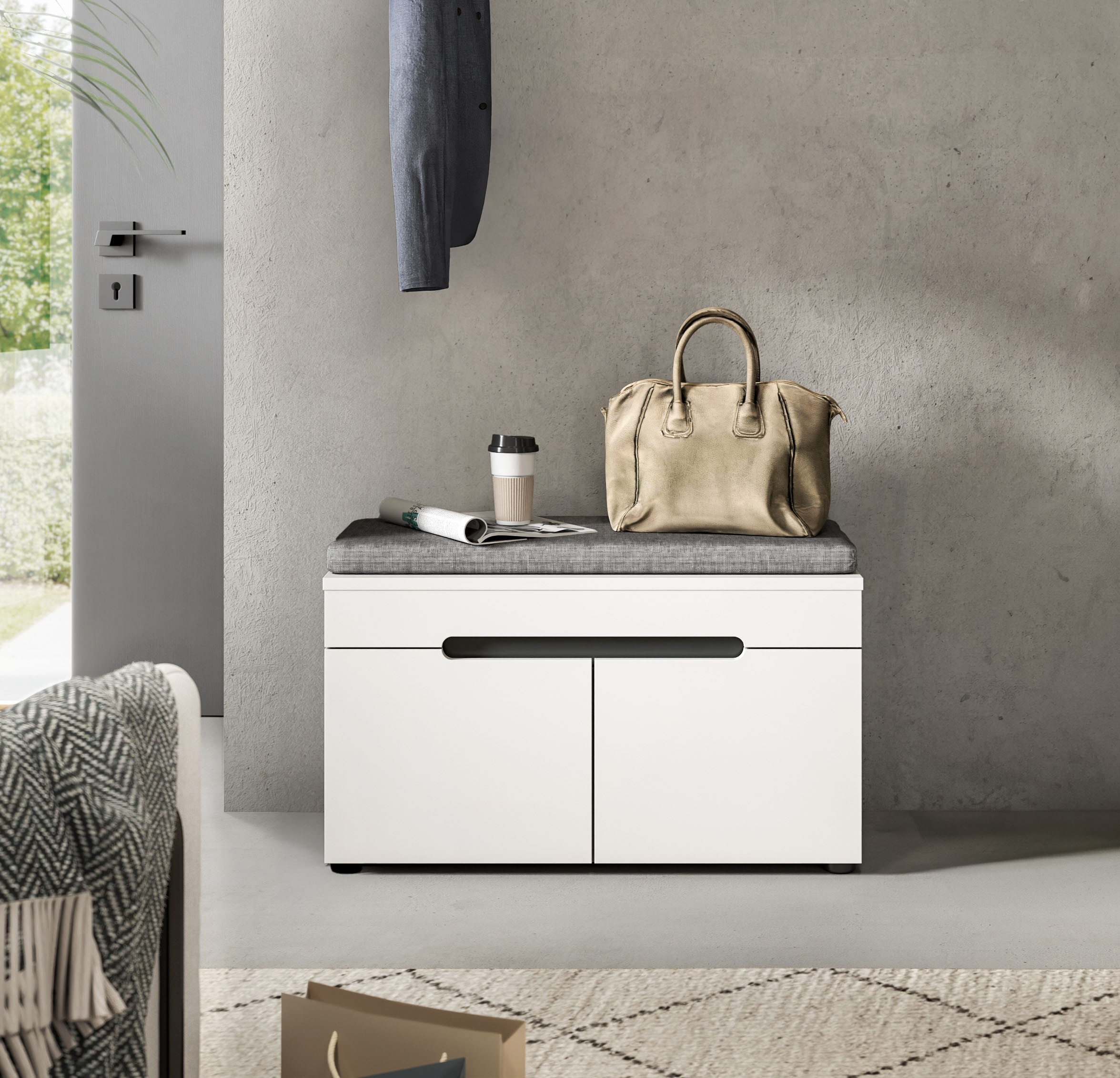 INOSIGN Banc »REHAT, TOPSELLER!, Breite 80cm, 2 Türen, 2 Fächer inkl. Sitzkissen« in verschiedenen Farben erhältlich, 2 cuis tlg. Garderobenbank, Flurbank, Dielenbank, Bank mit Stauraum, Bank