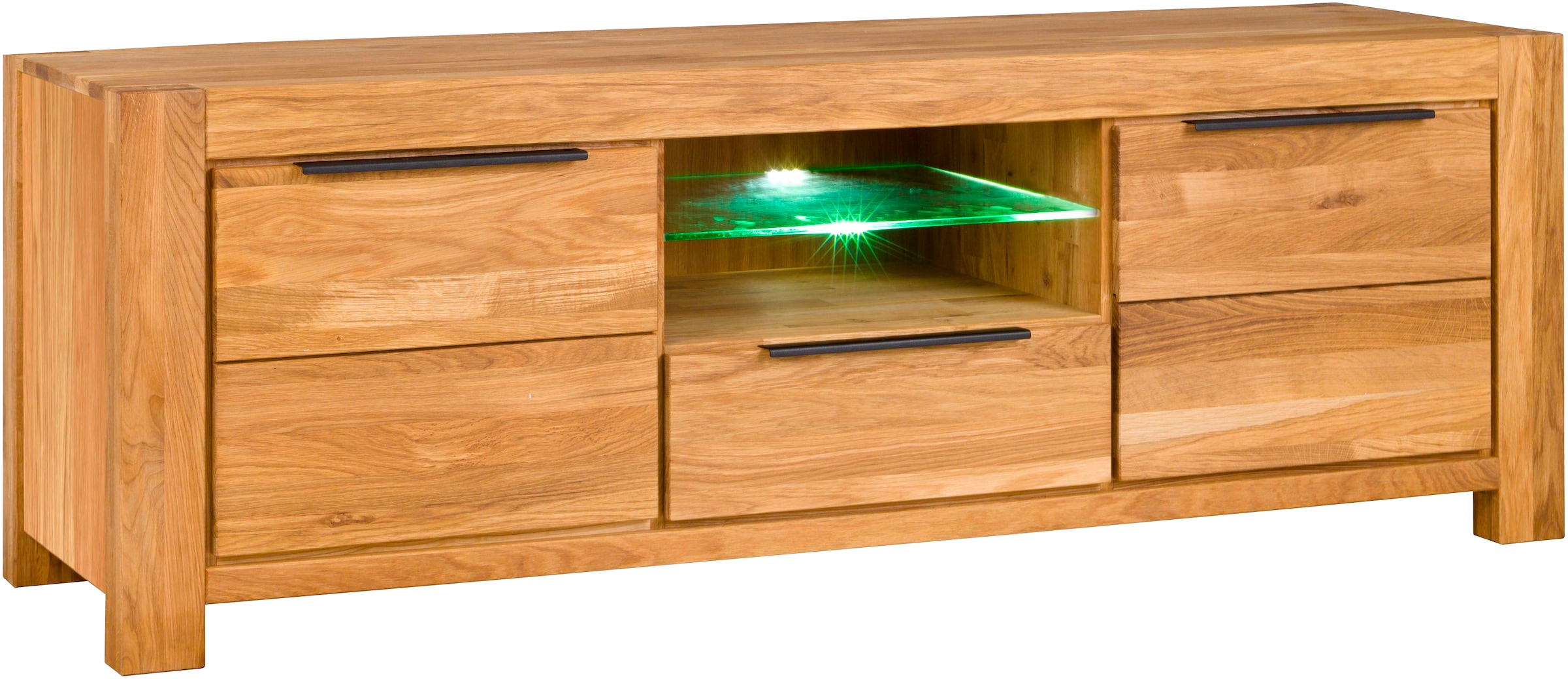 Note matérielle | Fronten, Deckpaltte und Füsse aus Eiche massivholz gölt.;Seinten aus Eiche furnier.;Schwarze Griffe;natürliche holz Maserung |