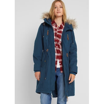 bonprix Parka mit Kapuze lässiger Jeans-Look, mit flauschigem Teddyfell-Futter, mit Kapuze