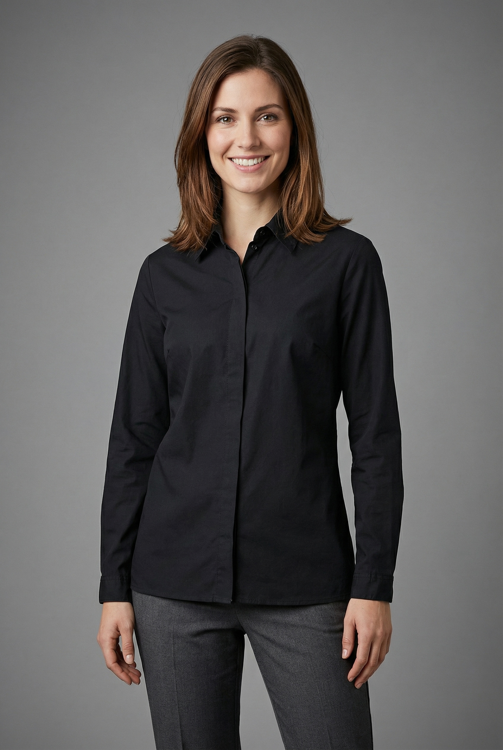 - Mit Hemdblusenkragen für einen klassischen Look
