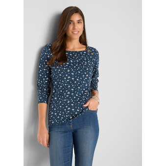 Mini-Blüten – Maxi-Wirkung: 3/4-Arm-Shirt im verspielten Dessin. Rundhals-Ausschnitt sowie elastische Abschlüsse an den Ärmeln und am Saum. Hautfreundliche Wohlfühl-Qualität. 100% Baumwolle. Maschinenwäsche.