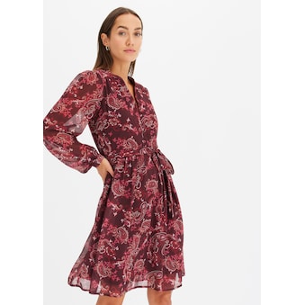 Das legere Shirtkleid aus der aktuellen Kollektion von bpc punktet vor allem mit seinem leicht fliessenden Material und seinem figurumspielenden Schnitt. Es zeigt sich mit dezentem Rundhalsausschnitt und 3/4-Ärmeln. Das modische Kleid lässt sich am besten zu Leggings und Strumpfhosen kombinieren.