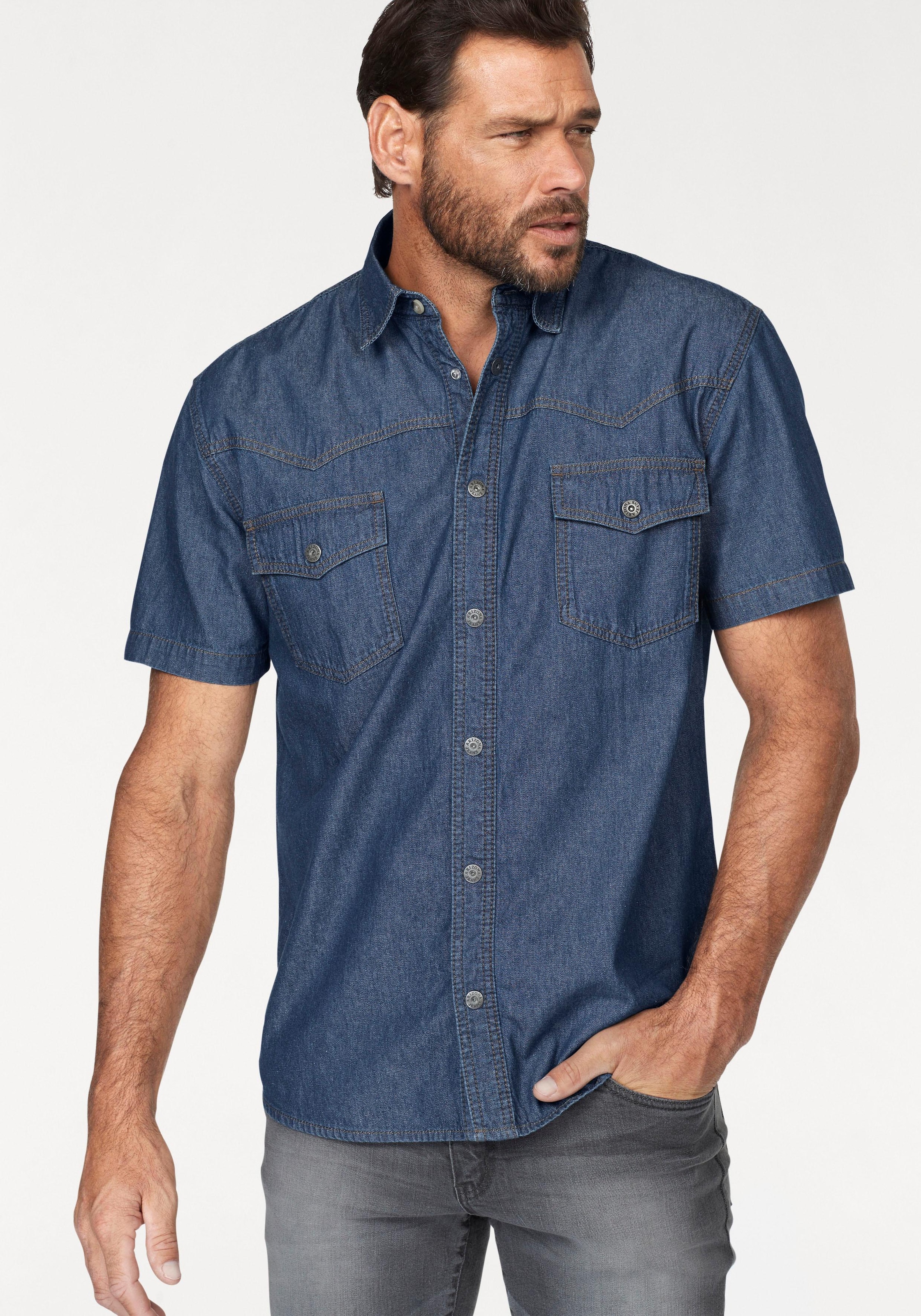 Kombistarkes Jeanshemd für Männer von Arizona. Mit einem normal breiten Schnitt. Die Ärmel sind kurz. .