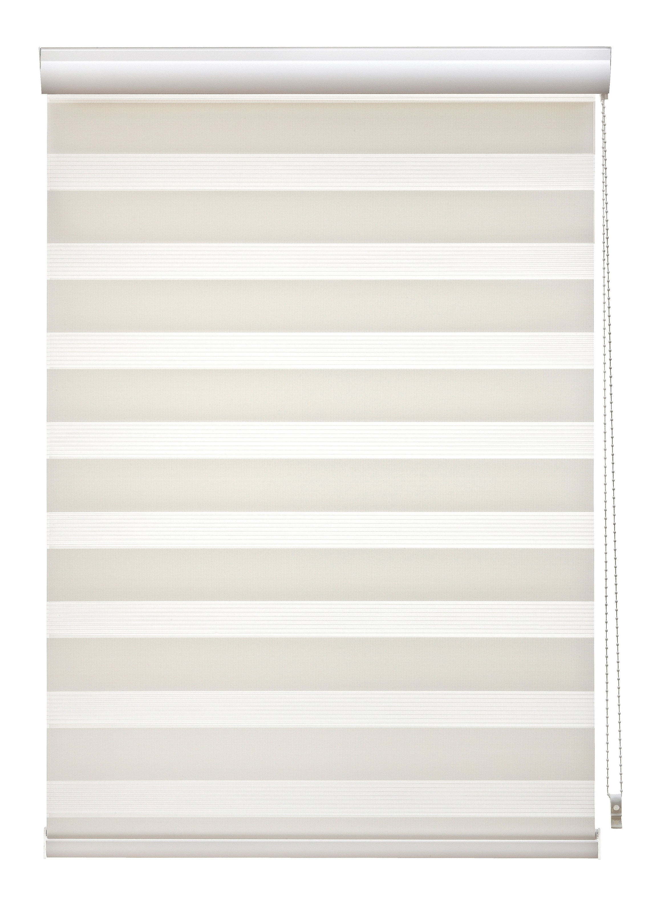 Doppelrollo von »Liedeco« im Festmass. Mit dem trendigen Doppelrollo können Sie individuell die Lichtverhältnisse in Ihren Wohnräumen regulieren. Der Stoff ist abwechseld in transparenten und blickdichten Streifensegmenten gewebt und verläuft doppelt gegeneinander. Durch diese Technik lassen sich vielfältige Lichteinwirkungen über den rechts positionierten Kettenzug steuern: von Durchsicht zu leichter Transparenz bis hin zu Sicht- und Lichtschutz. Die vormontierte Kopfschiene aus weiss beschichtetem Aluminium und mit weisser Blende wird mittels Trägern einfach auf dem oberen Fensterrahmen montiert.