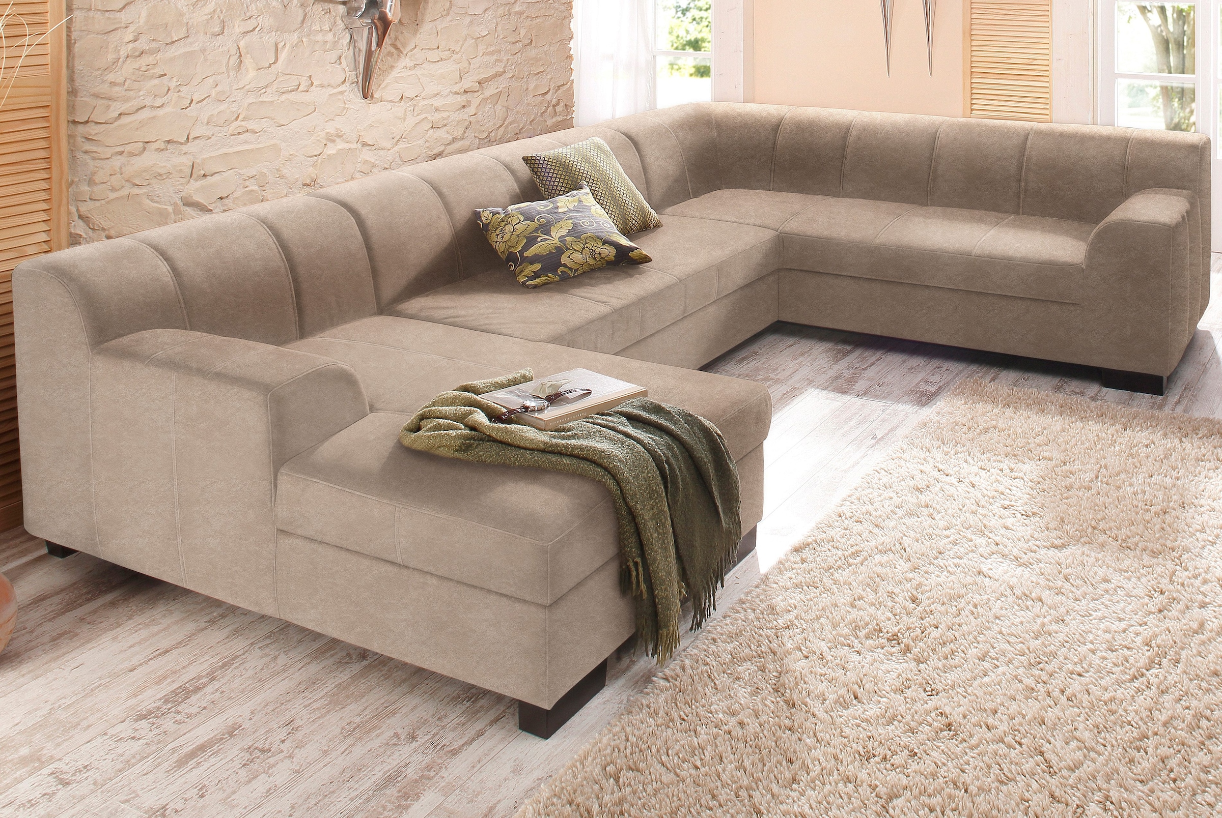 Home affaire Paysage de salon »Falk klare Linien, zeitlos und komfortabel, U-Form« mit Federkern und wahlweise mit Bettfunktion
