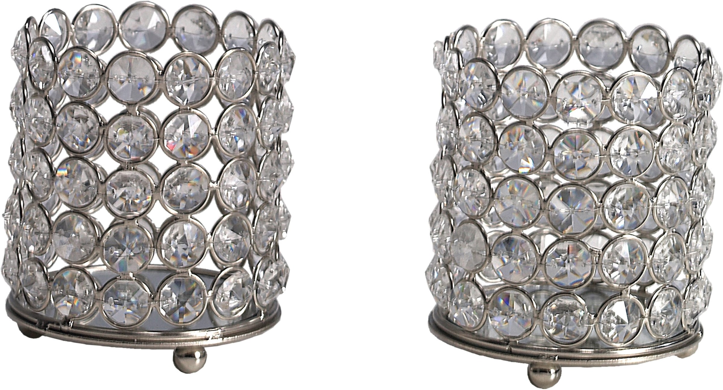 Dekoratives i-Tüpfelchen in einem stilvollen Ambiente: Der hübsche Kerzenständer »Lucy« von Home affaire begeistert mit traumhaft schönem Design und ist im praktischen 2er-Set erhältlich. Zahlreiche runde Glaskristalle machen den für Teelichter und kleine Stumpenkerzen geeigneten Kerzenleuchter zu einem edlen Blickfang, und erzeugen in Kombination mit dem brennenden Kerzenlicht faszinierende Effekte. Das schöne Set lässt sich wunderbar auf der Kommode platzieren, sorgt aber auch auf einem liebevoll gedeckten Tisch für eine stimmungsvolle Beleuchtung. Liebhaber von romantisch angehauchten Wohnaccessoires werden an dem hübschen Home affaire Kerzenständer »Lucy« Gefallen finden!