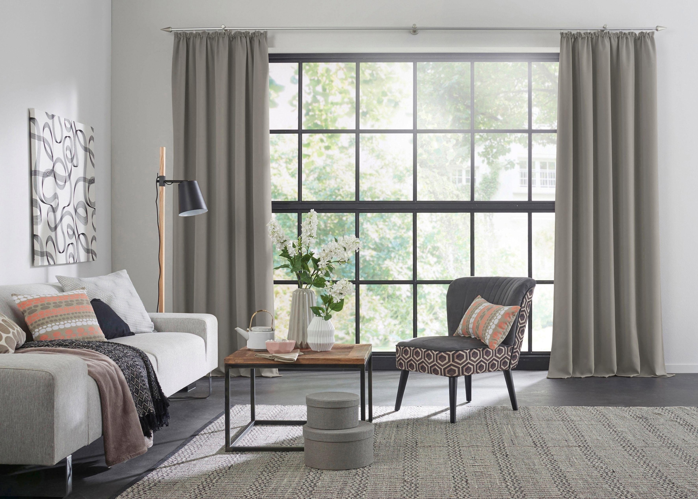 Hinweis Dekoration  | Die angegebenen Masse sind Stoffmasse.;Am Fenster fertig dekoriert, reduziert sich die Breite um ca. die Hälfte.  |
