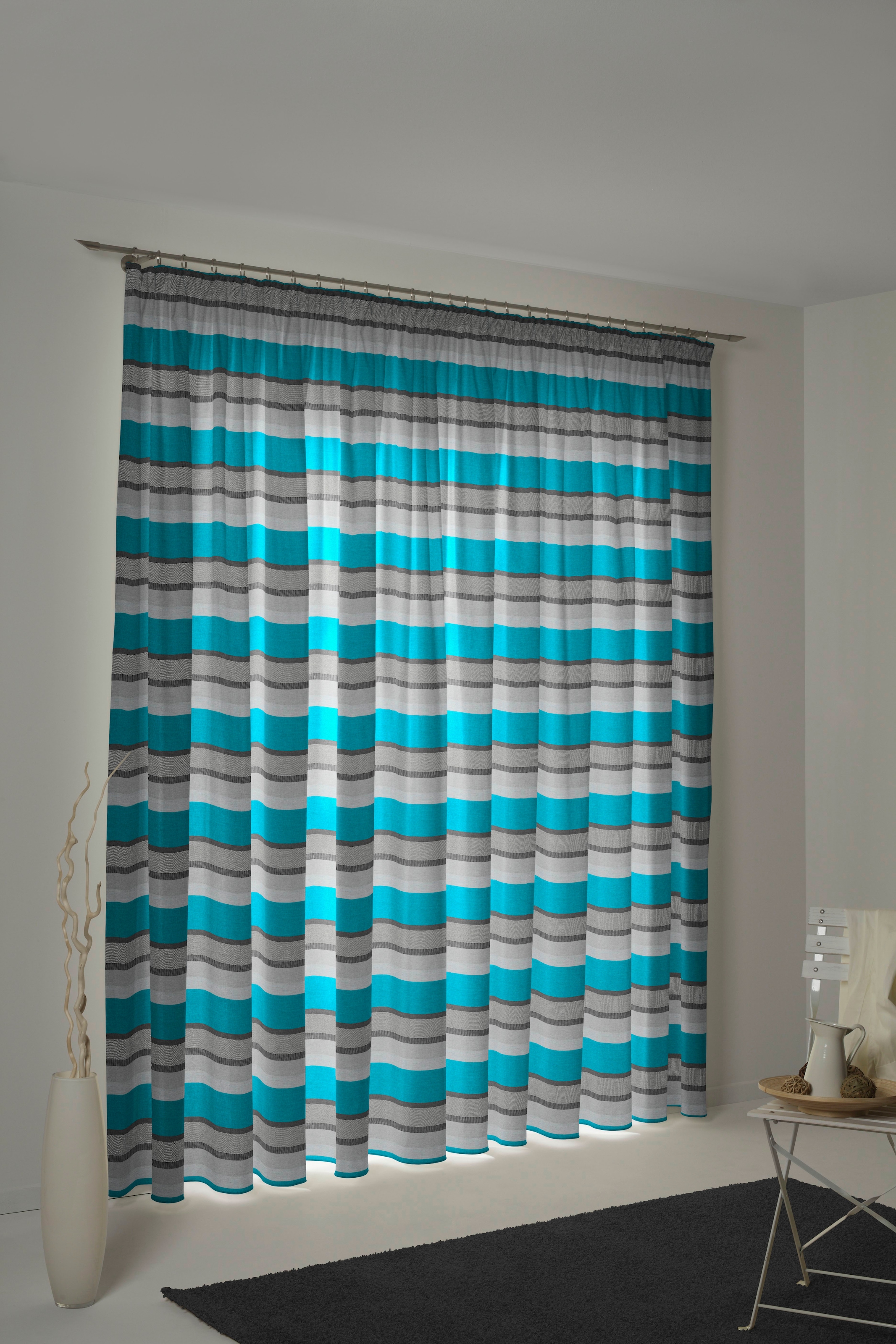 Mit dem wunderschönen Vorhang LANGWASSER von »Georg Chr. Wirth« entscheiden Sie sich für einen modernen und zeitlosen Jacquard-Dekostoff. Die frische und moderne Musterung dieses Vorhangs mit Wellenlinien, passt perfekt in alle Ihrer Räume. Egal ob Ess-, Schlaf- oder Wohnzimmer, dieser Vorhang verschönert Ihr Heim im Handumdrehen.