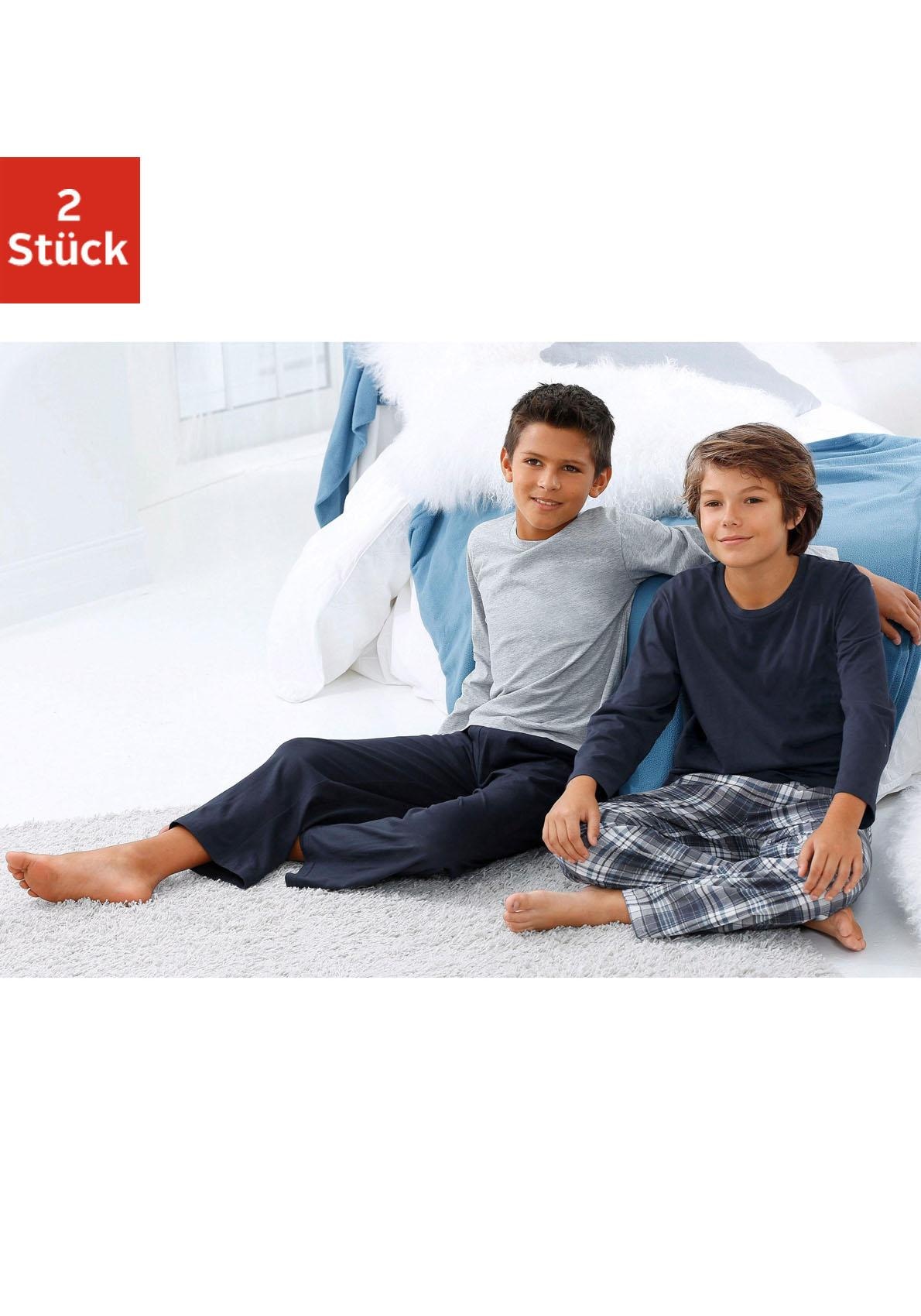 le jogger® Pyjama Packung, 2 Stück, 4 cuis tlg., Schlafanzug in langer Form, Hose 1x uni und 1x kariert