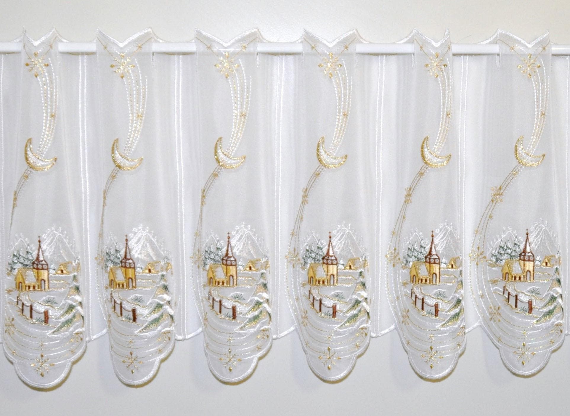 Stickereien Plauen Rideau à vitres »Winterlandschaft« Passage tige 1 cuis tlg.