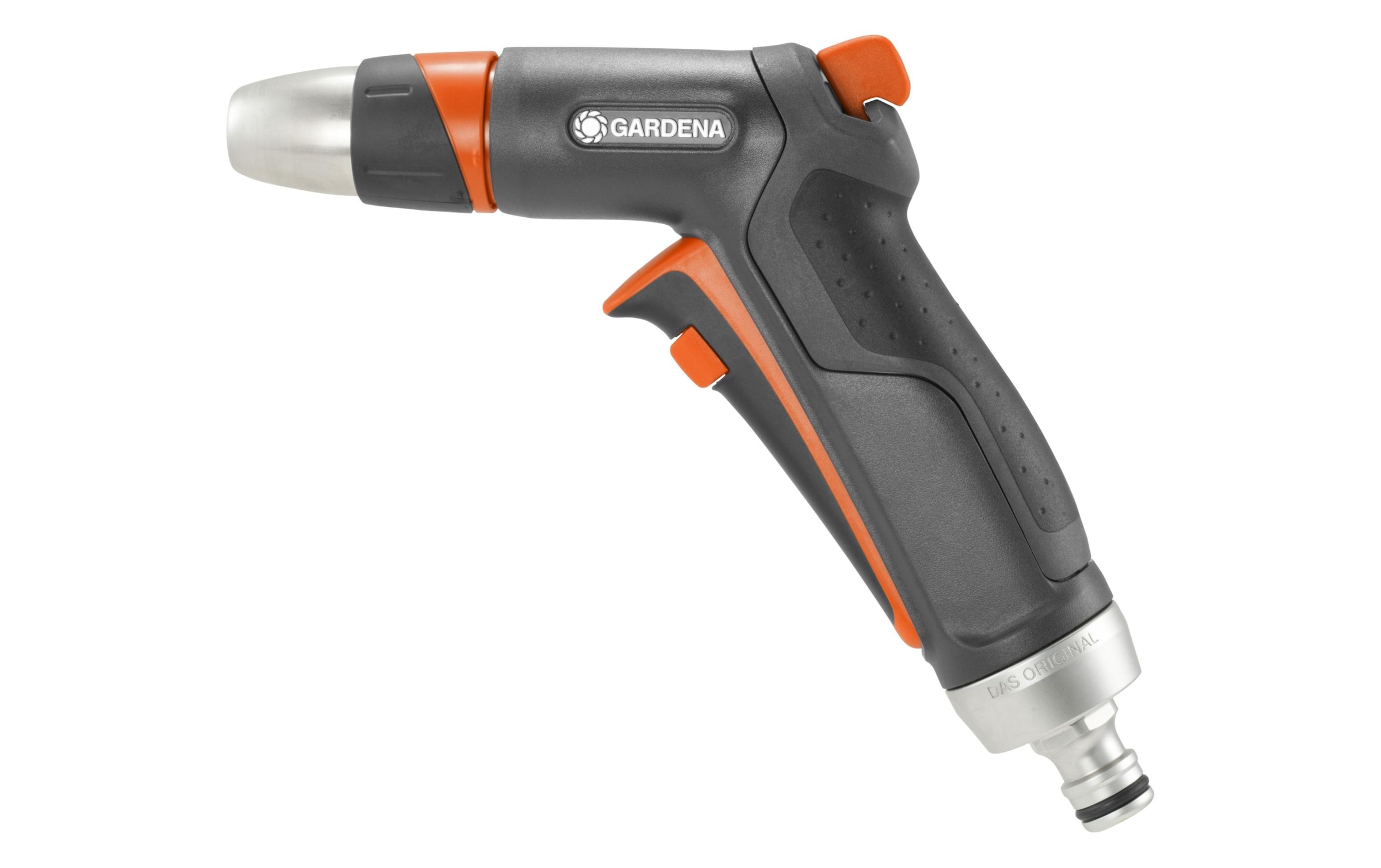 Nutzen Sie die Gardena Premium Reinigungsspritze für kraftvolle Reinigungsarbeiten und für die Bewässerung Ihrer Pflanzen, Der Wasserstrahl lässt sich vom Stechstrahl bis hin zum feinen Sprühstrahl variabel einstellen, Der Spritzenkopf und das Anschlussstück sind aus Metall gefertigt und daher extrem widerstandsfähig, Durch integrierte Weichkunststoffelemente wird die Premium Reinigungsspritze besonders griffig, Die ergonomische Auslösetaste und die stufenlose Regulierung der Wassermenge mit nur einem Finger machen die Handhabung besonders angenehm, Für eine dauerhafte Bewässerung können Sie die Auslösetaste einfach feststellen, Dank des integrierten Frostschutzes nimmt die Premium Reinigungsspritze auch bei Temperaturen unter dem Gefrierpunkt keinen Schaden,