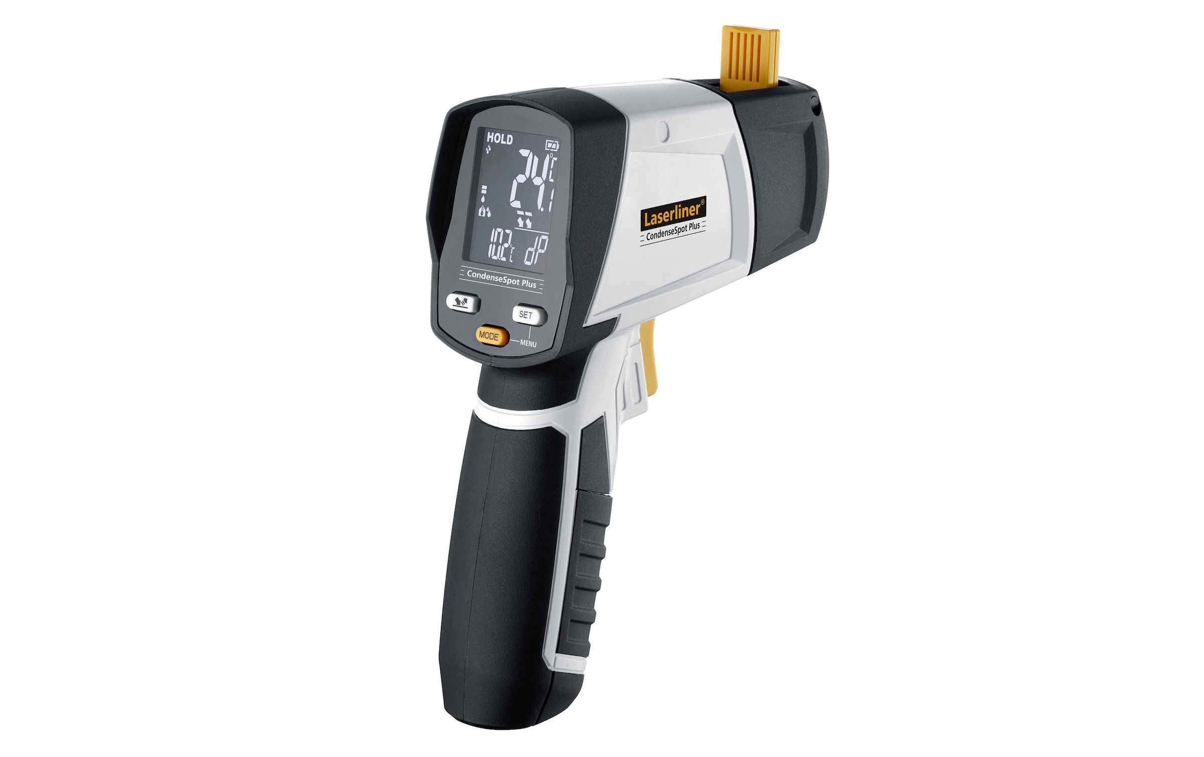 Mit dem CondenseSpot Plus von Laserliner lokalisieren Sie Wärmebrücken und Kondensationsfeuchtigkeit selbst an schlecht zugänglichen oder gefährdenden Stellen. Das Gerät verfügt ein stabiles, ergonomisches Gehäuse mit einer beleuchteten LC-Anzeige.