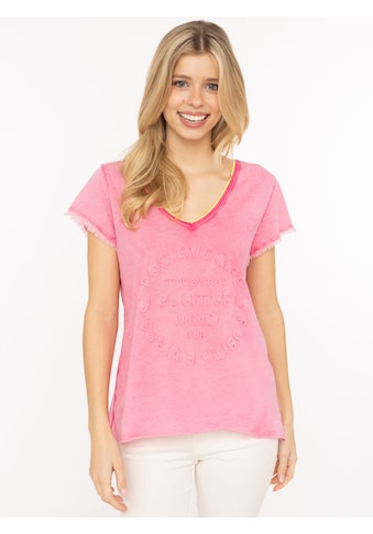 - T-Shirt »"Positive Mind"« V-Ausschnitt, Kurzarm, Used-Look, Baumwolle, ausgefranste...ZwillingsherzUrsprünglicher Preisstatt 59.90 CHFRabatt- 41%Aktueller Preis34.90 CHF