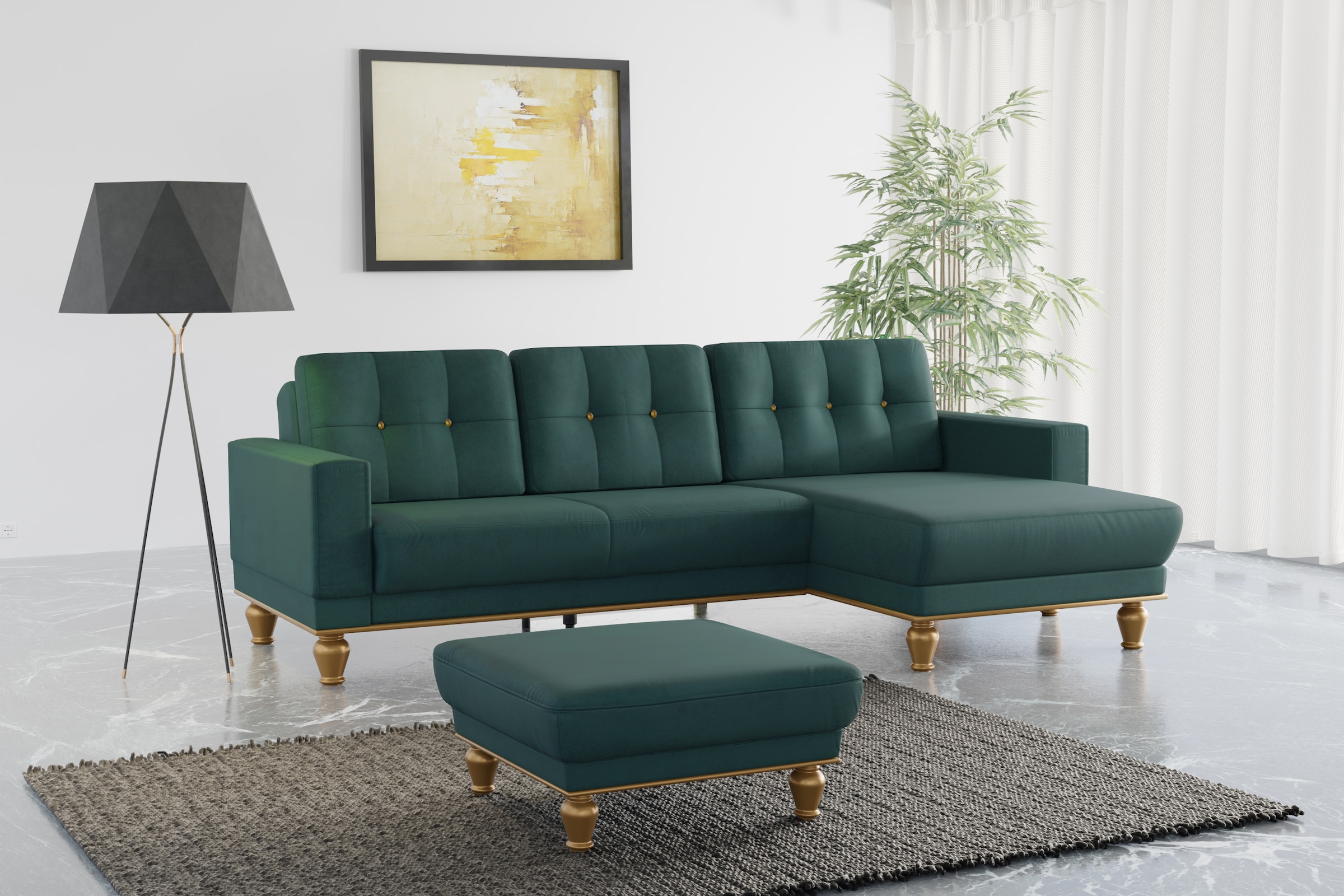 - Ecksofa »Orient 1 L-Form« inkl. 4 Zierkissen mit Strass-Stein, goldfarbene Metallfüssesit&moreAktueller Preis3169.00 CHF