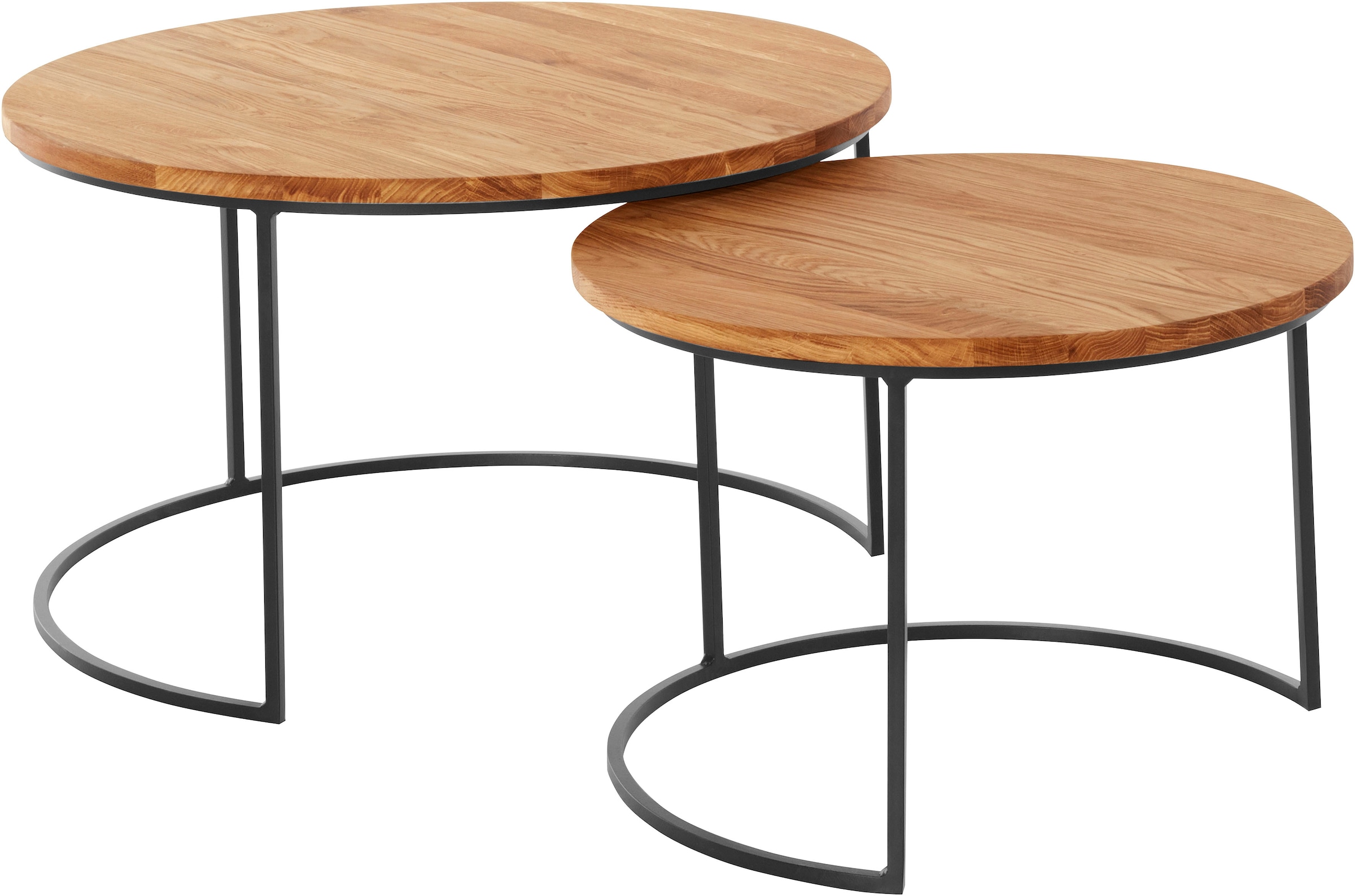 andas Couchtisch »Caprinus« Masse (B/T/H): 75/75/39 und 58/58/39 cm, aus Eichenholz, FSC® zertifiziert, 2er-Set, stabiles Metallgestell
