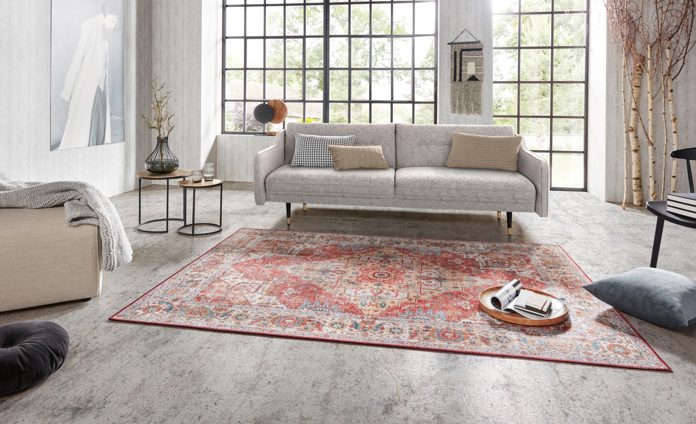 Ein extravagantes Accessoire aus der Kollektion ASMAR von Nouristan. Der maschinell hergestellte Teppich „Gratia“ wird zum echten Hingucker in jedem Wohnbereich! Die hochwertige Verarbeitung und die sorgfältig ausgewählten Materialien überzeugen auf ganzer Linie. Das klassische, dennoch modern interpretierte Vintage-Design wird von kräftigen Farben unterstrichen und eine farblich angepasste Kettelung in der angesagten Handmade-Optik rundet das Gesamtbild perfekt ab. Das klassische und sehr detailreiche Design lässt sich zu unterschiedlichen Einrichtungen vielseitig kombinieren und selbst in einer modern eingerichteten Wohnung findet dieser Teppich seinen Platz. Dank dem verarbeiteten Polyester ist dieser Teppich besonders strapazierfähig und pflegeleicht, die meisten Flecken lassen sich leicht mit einem handelsüblichen Teppichschaum entfernen. Dazu sorgt das verarbeitete Material auch für eine samtige und weiche Oberfläche. Auch in Räumen mit einer Fussbodenheizung kann der Teppich problemlos ausgelegt werden. Bitte beachten Sie, dass die Farben auf Ihrem Monitor von den Original-Farbtönen abweichen können.