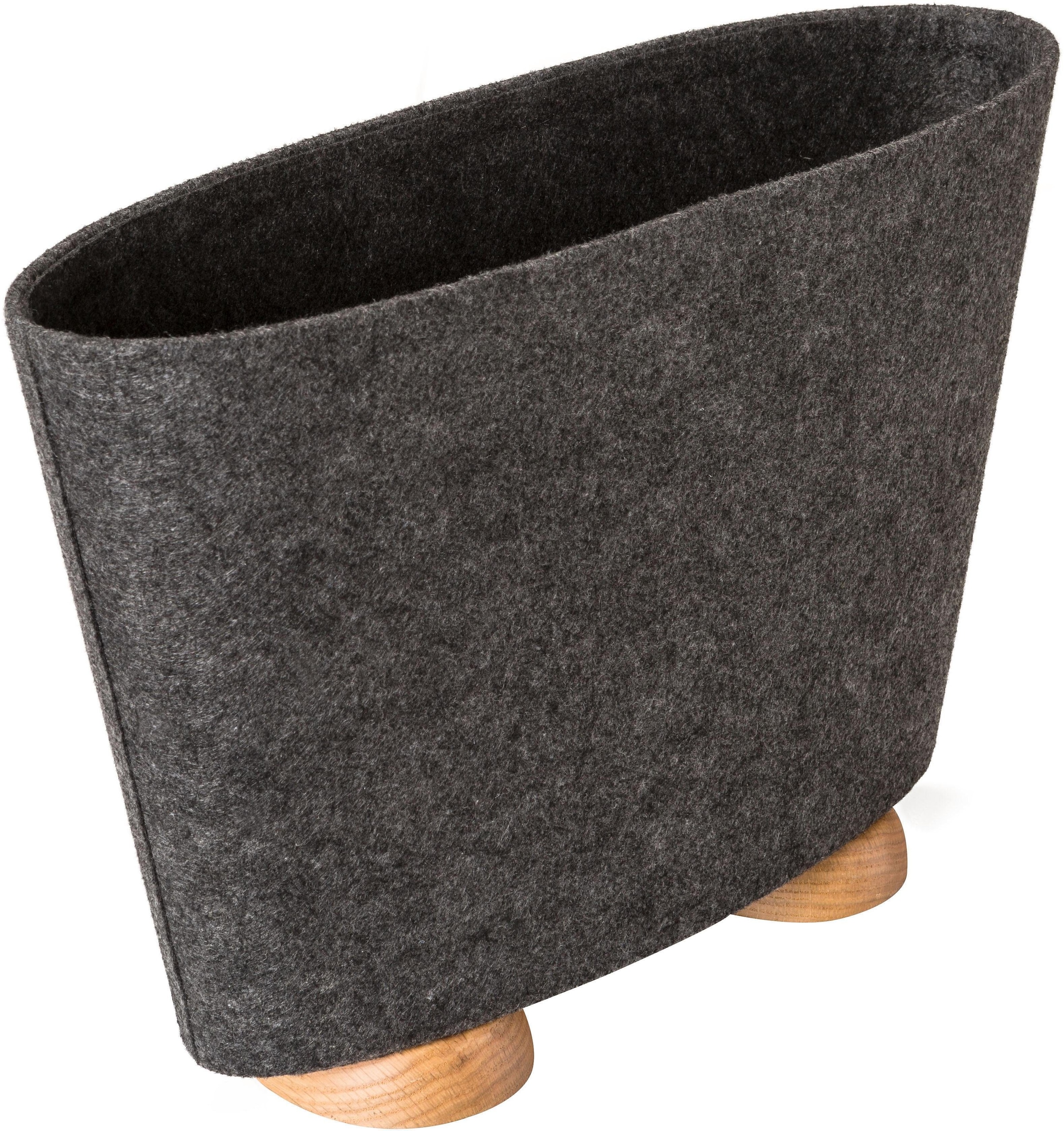 Die elegante Zeitschriftenablage »Avis« von pieperconcept aus Filz mit Eichenholzfüssen schafft im Handumdrehen Übersicht und Ordnung im Wohnbereich. Der Zeitungsständer sorgt für eine aufgeräumte und gemütliche Atmosphäre und verschönert das Ambiente im Wohnzimmer oder Gästezimmer.