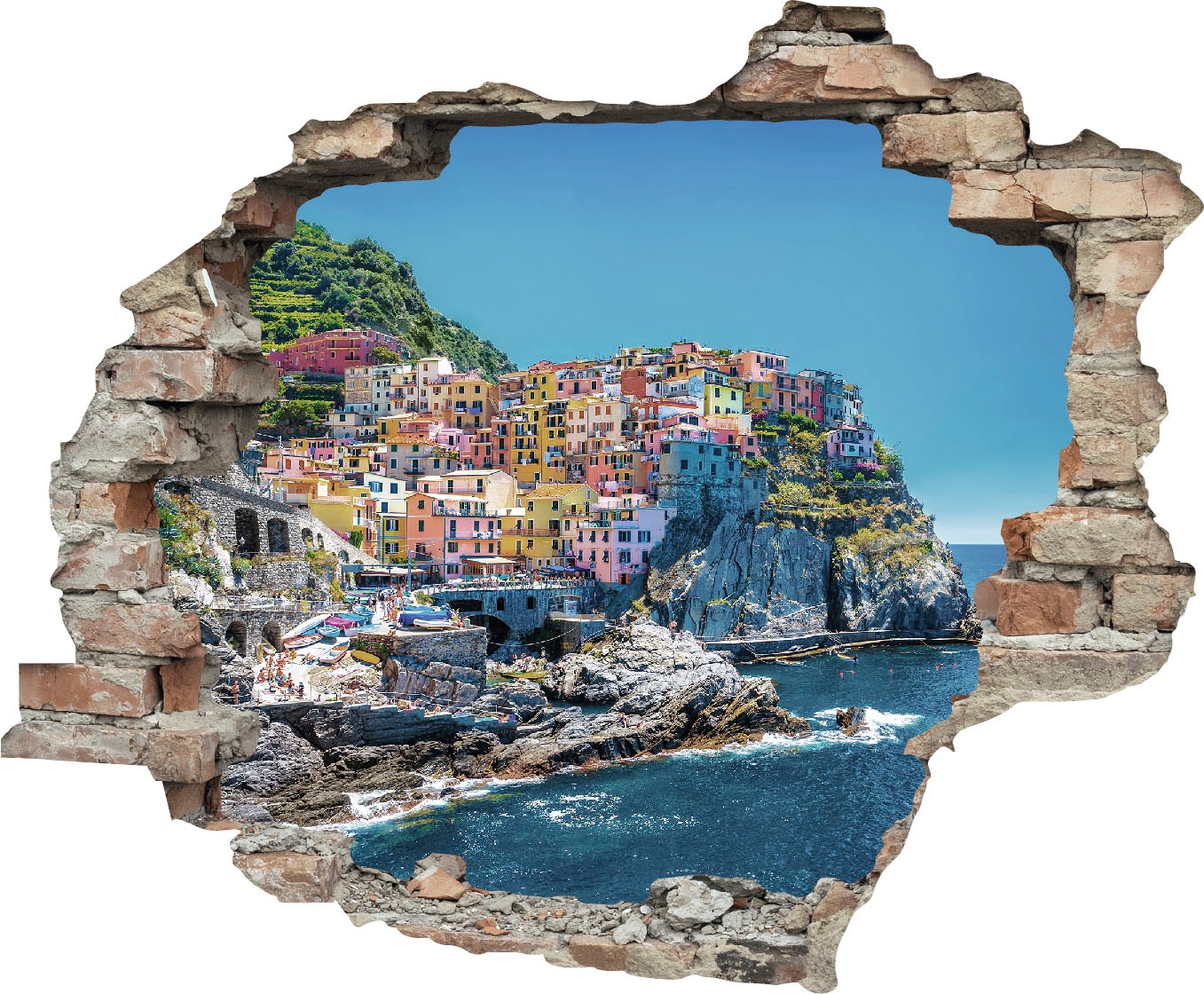 Bildquelle: queence Wandtattoo »Küstenstadt« Wandsticker, Wandbild, selbstklebend, 3D, Wanddurchbruch