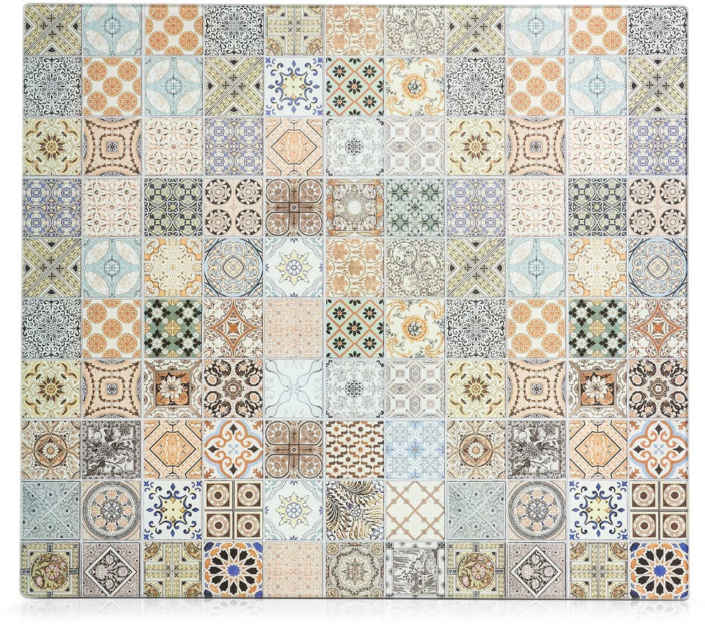 Diese modernen Platten aus Sicherheitsglas können sowohl als Herdabdeckung als auch zum Schneiden von Lebensmitteln verwendet werden. Sie überzeugen nicht nur durch ihre Funktionalität, sondern auch durch das orientalische, filigrane Dekor in gedeckten Farben. Die Silikonfüsse sorgen für den nötigen Halt, um einem Verrutschen der Platten vorzubeugen. Sie sind hitzebeständig bis 220°/240°C, schnittfest und besonders hygienisch
