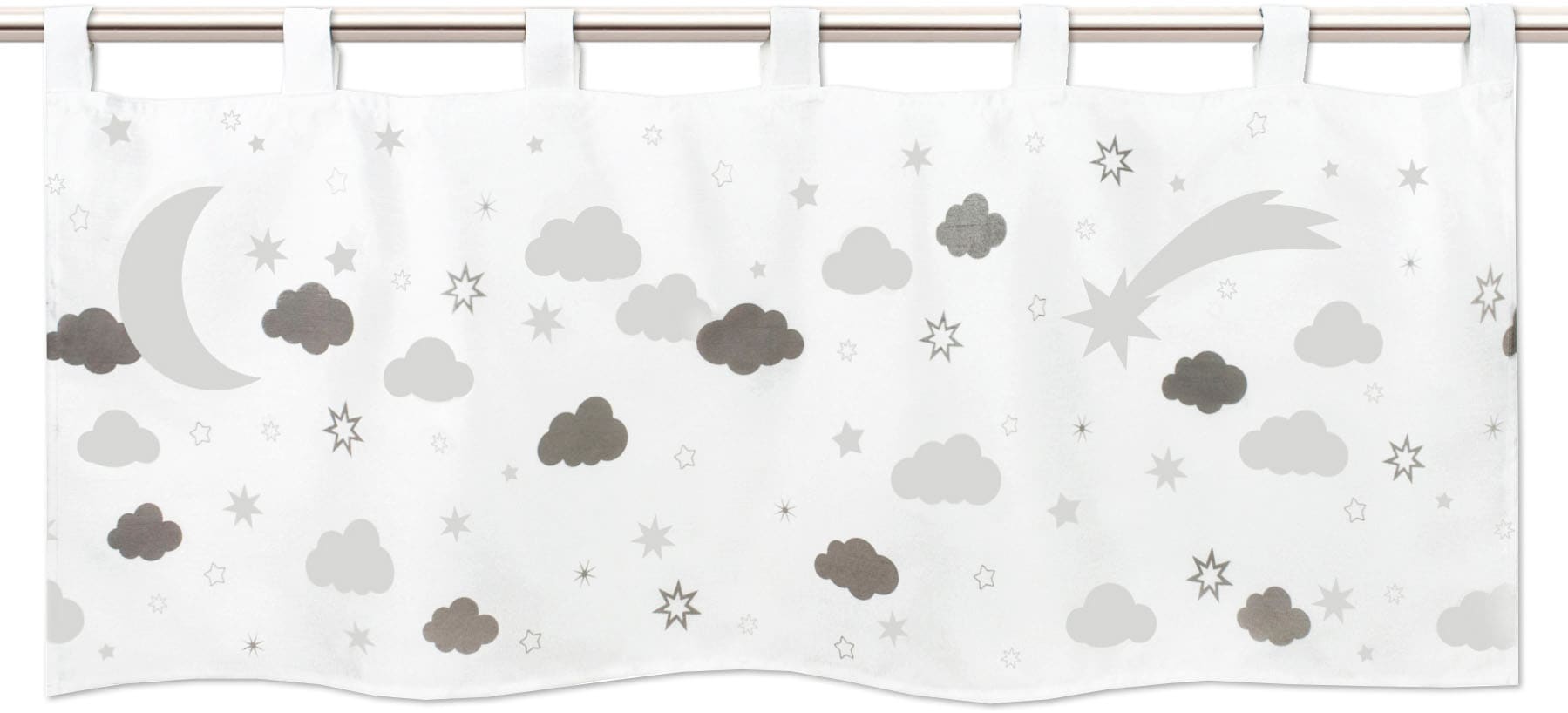 Diese stimmungsvolle Gardine »MONACO« von Delindo Lifestyle wurde speziell für Ihr Kinderzimmer entwickelt. Der blickdichte und weich fallende Vorhang in Wildseide-Optik für Kinder wurde mit fluoreszierenden Sternen, Sonne, Wolken und Monden ausgestattet, die im Dunkeln wunderschön leuchten. Die Aufladung erfolgt durch direktes Tageslicht oder Kunstlicht. Die blickdichte Bistrogardine bietet einen guten Sichtschutz gegen neugierige Blicke von aussen. Dieser Vorhang glänzt mit pflegeleichten Merkmalen, sodass er in der Waschmaschine waschbar ist. Die Gardine punktet mit einer Schlaufenaufhängung für Stäbe bis zu 30 mm Durchmesser. Dadurch sitzt diese wundervolle Gardine immer perfekt und die Schlaufen fallen gleichmässig. Diese Gardine sorgt für ein gemütliches Zuhause. Lassen Sie sich bezaubern durch diesen einzigartigen Blickfang für Ihr Fenster. Sie erhalten ein hervorragendes Qualitätsprodukt aus dem Hause DELINDO LIFESTYLE.